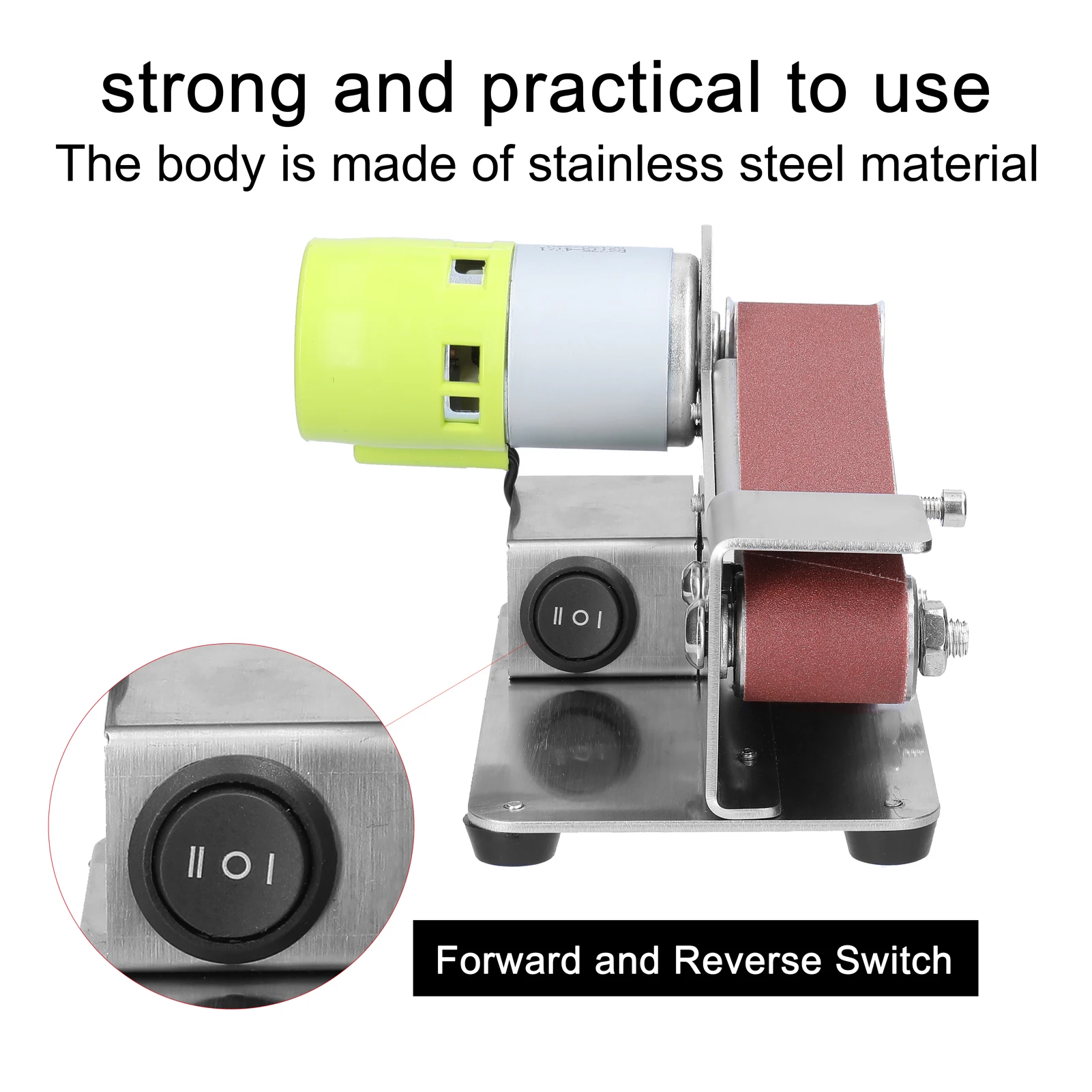 Это многофункциональная ленточная шлифовальная машина миниатюрного размера, легкая и портативная. Конструкция двигателя с низким уровнем шума, простота установки и эксплуатации. Использует высокоскоростные подшипники, высокий крутящий момент и стабильную работу. Песок песочной ленты однородный, нелегко потерять песок, более износостойкий. Функция регулировки положительного и отрицательного вращения, одна кнопка для переключения, и это более удобно в использовании. Вы можете попробовать.