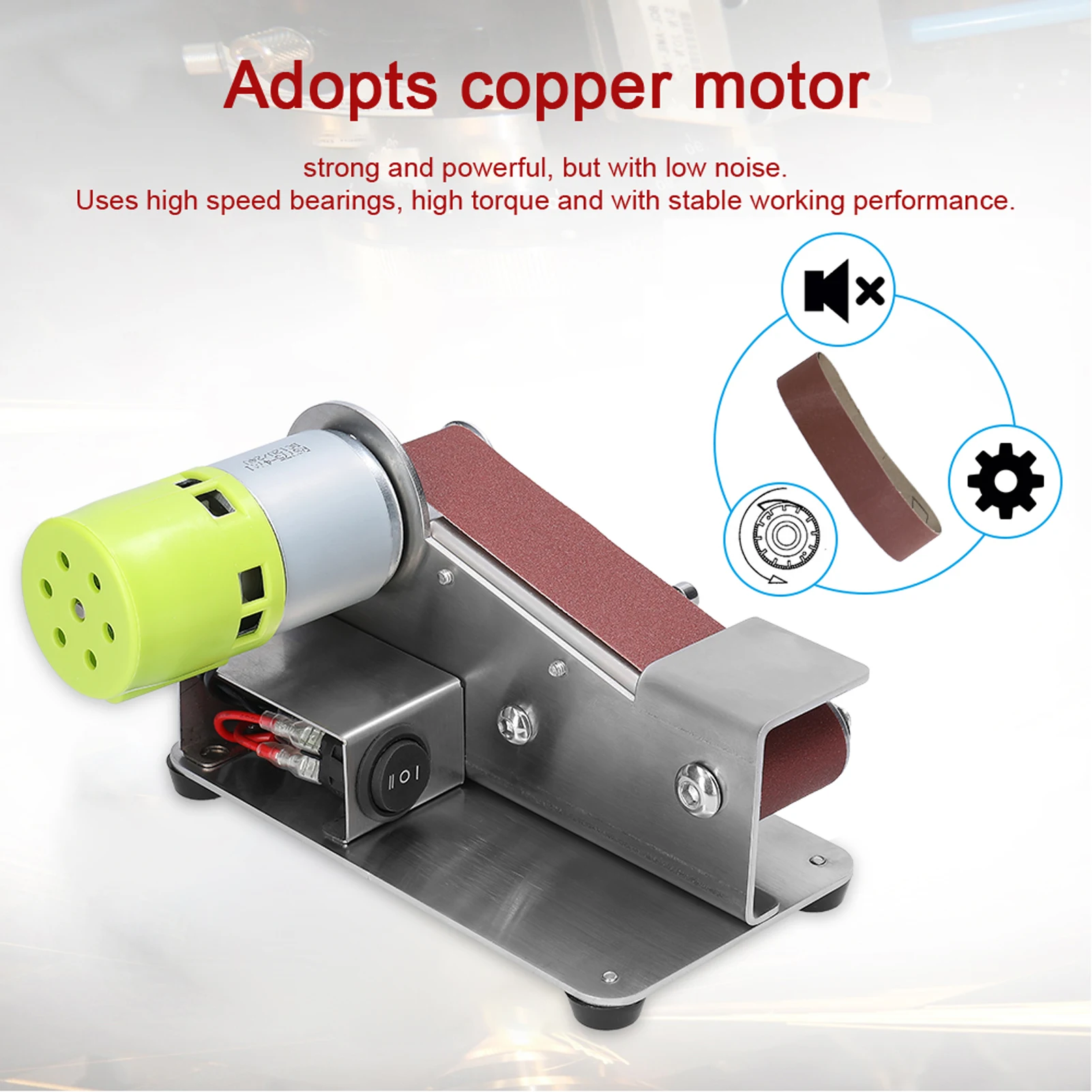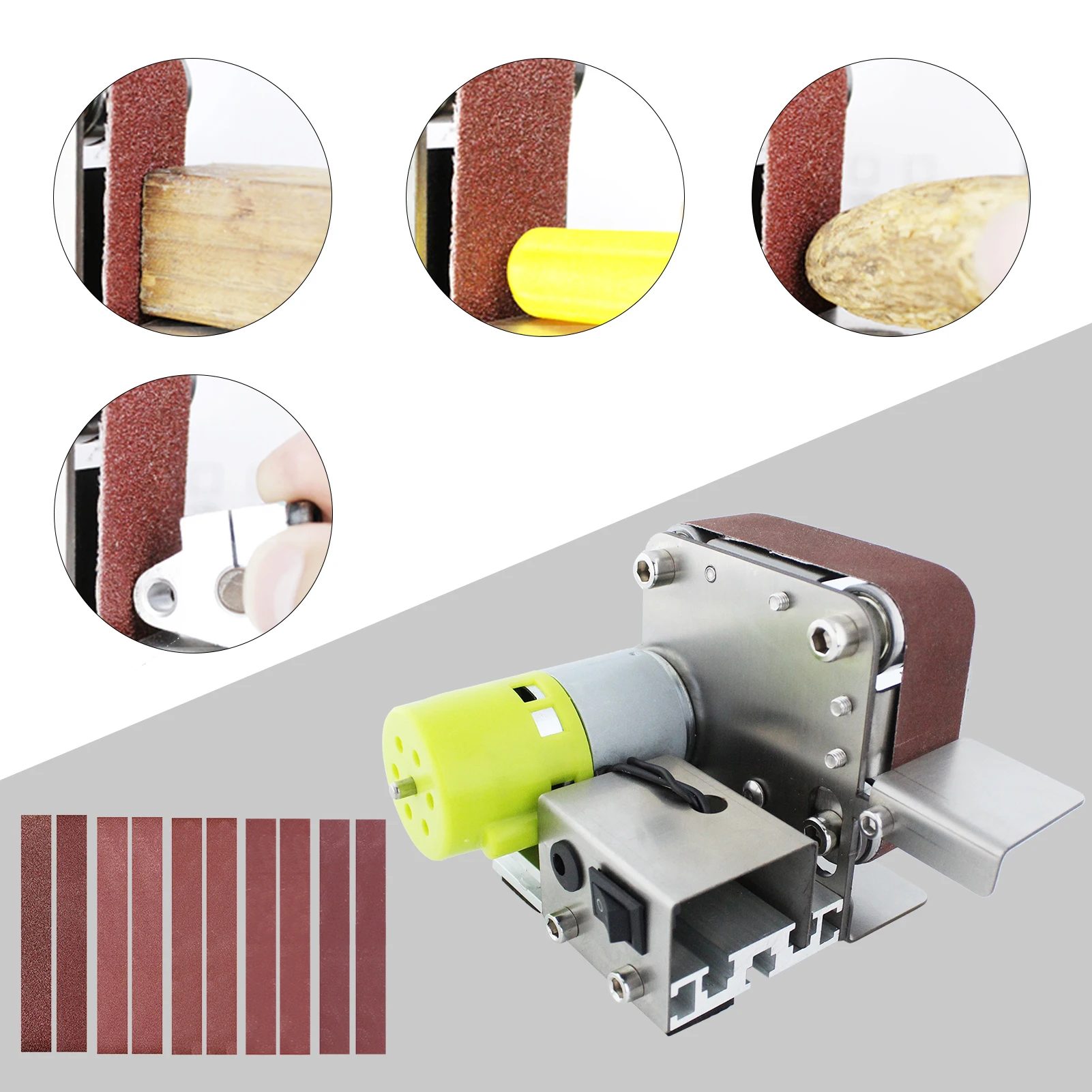 Это многофункциональная ленточная шлифовальная машина, портативная мини-машина, малошумная, простая в установке и эксплуатации, является домашним инструментом DIY.