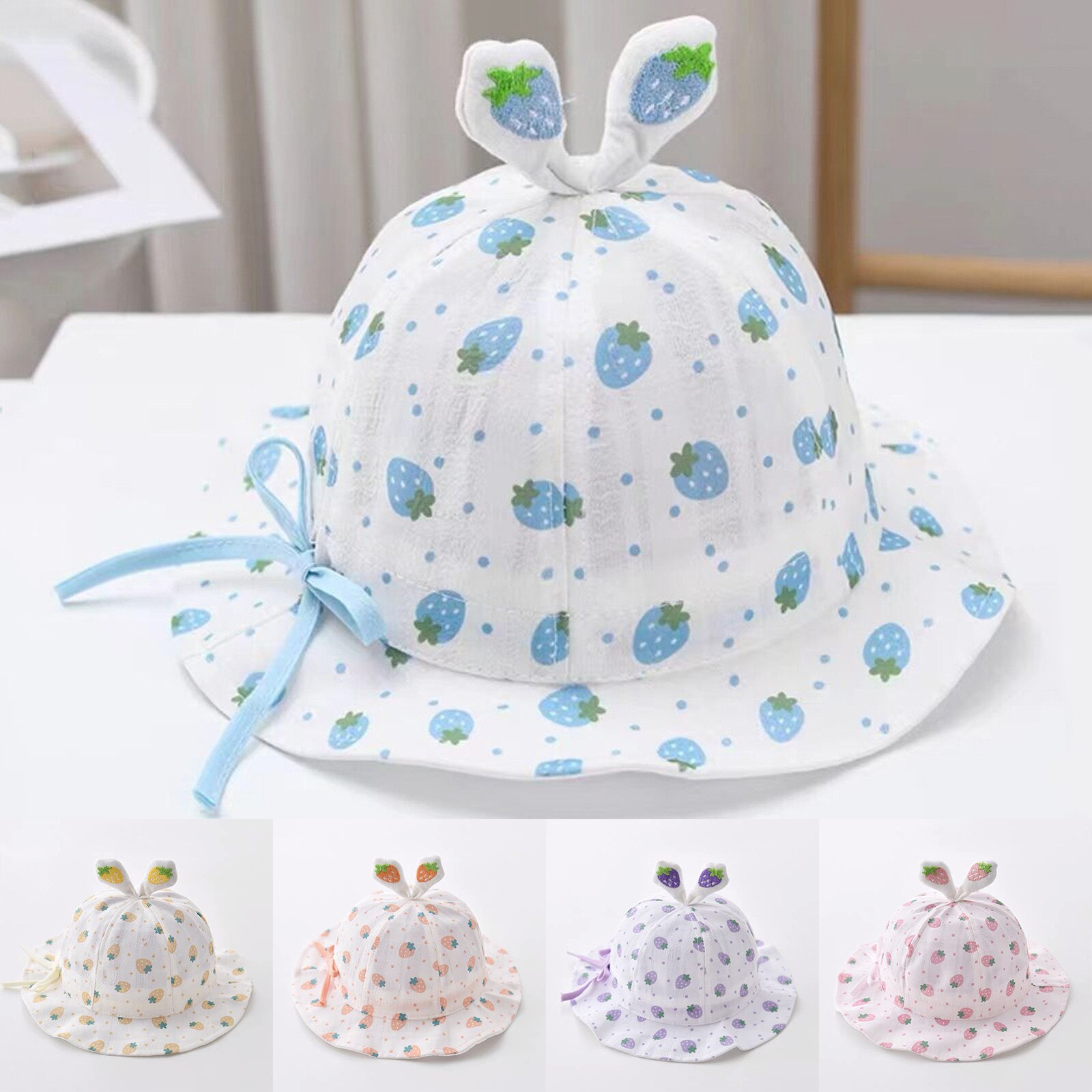 Шляпа для младенцев Летняя шляпа от солнца Девушка Дышащая шляпа с большими полями Шляпа рыбака Солнцезащитный крем Солнцезащитная шляпа Мультфильм Клубника