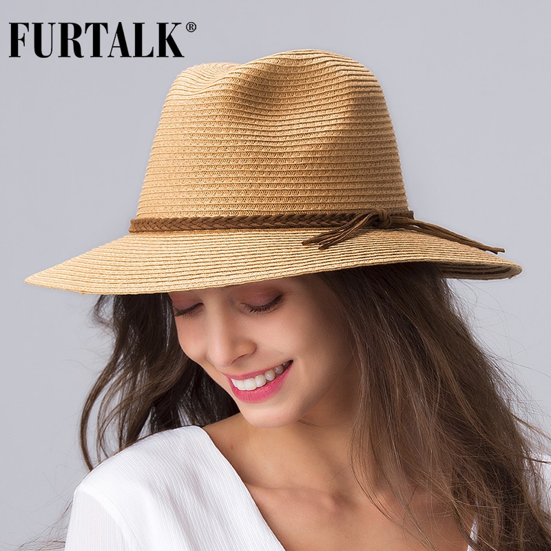 Шляпа FURTALK Соломенная женская, Пляжная Панама от солнца, с широкими полями, Кепка с защитой от ультрафиолета, лето 2020