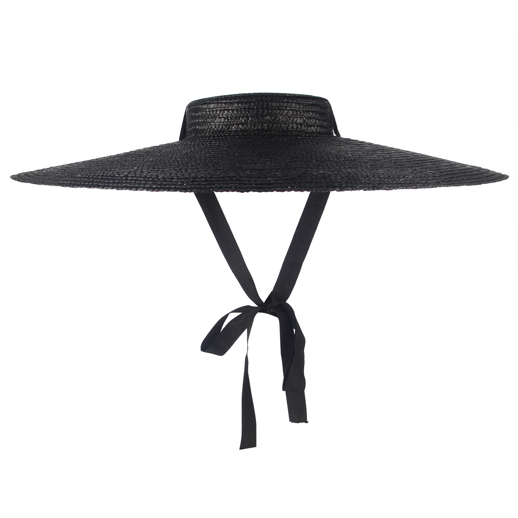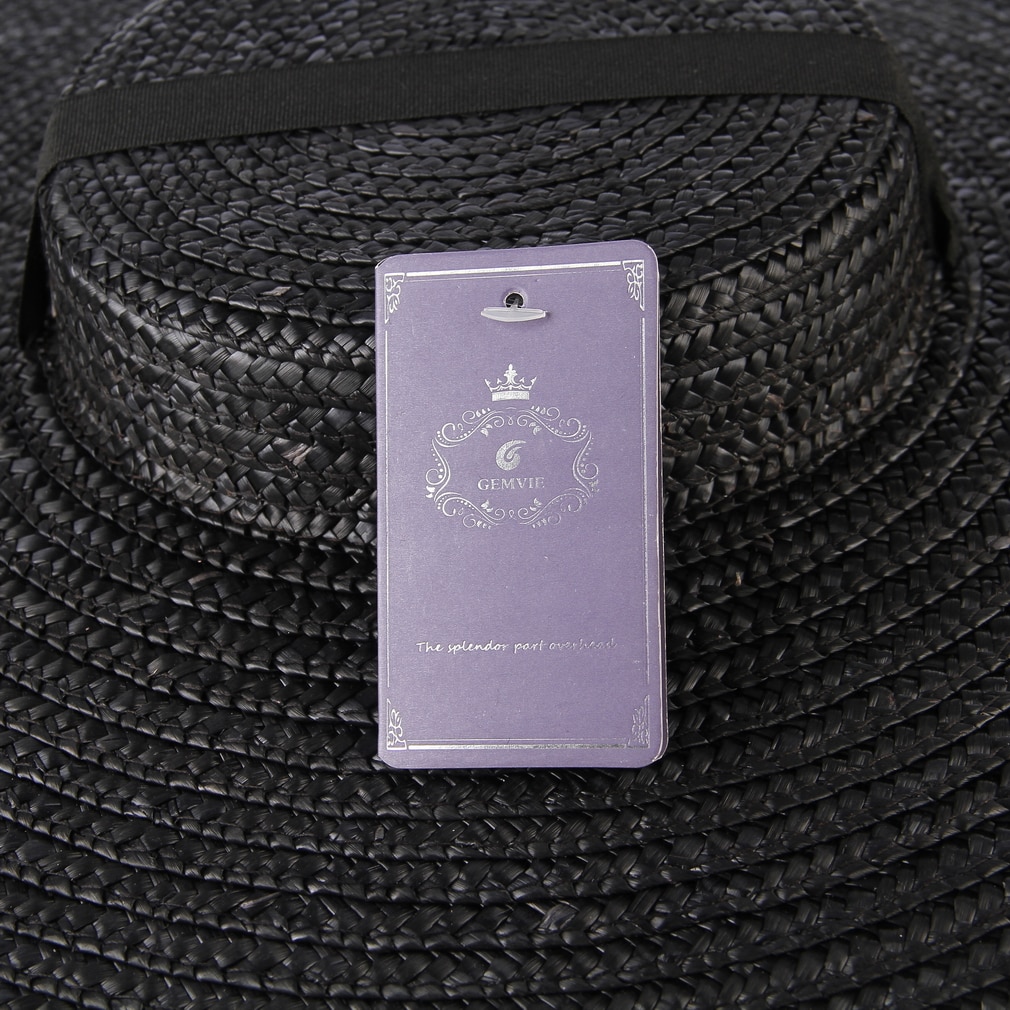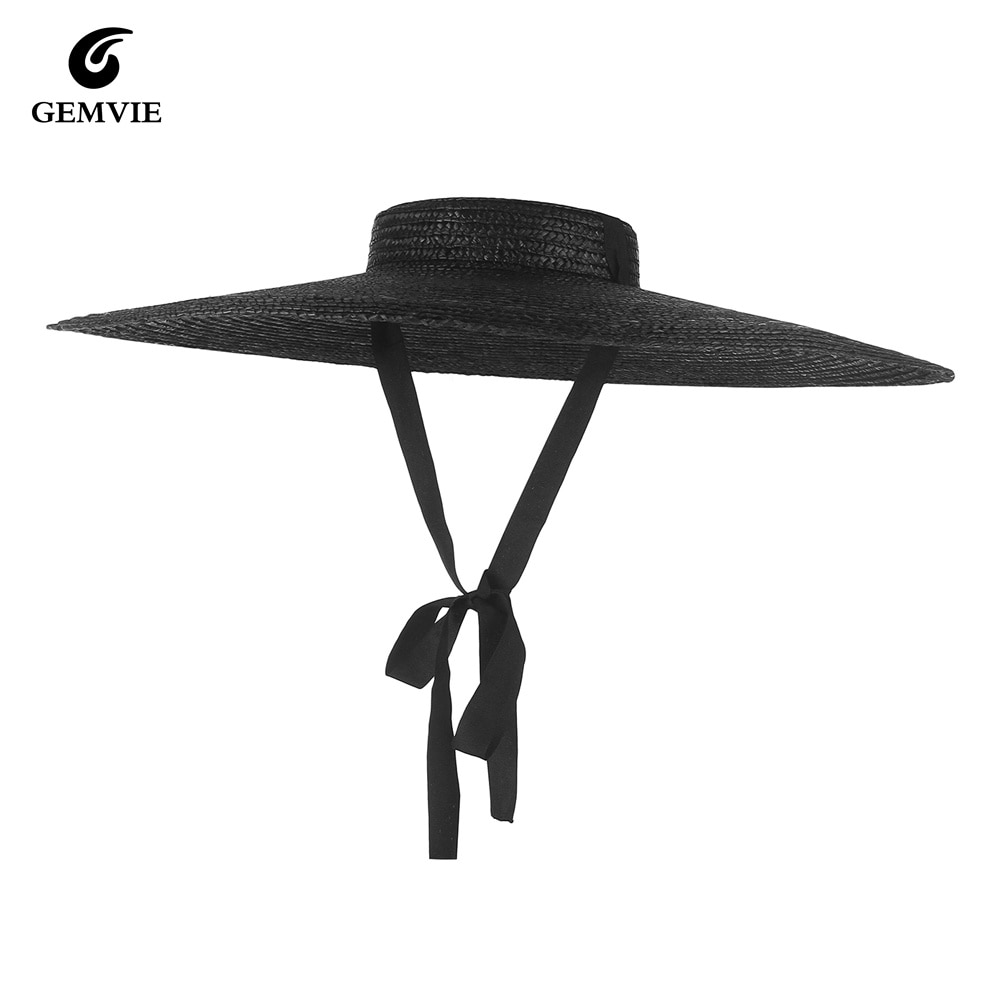 Шляпа GEMVIE с черными широкими полями женская, Соломенная пляжная Панама с лентой, модная Солнцезащитная шапка с ремешком для подбородка