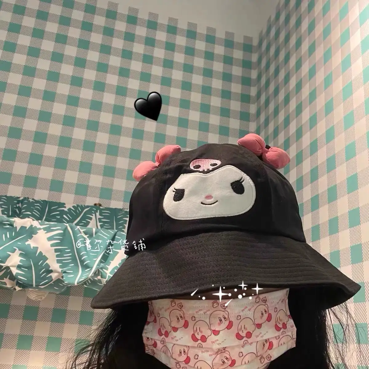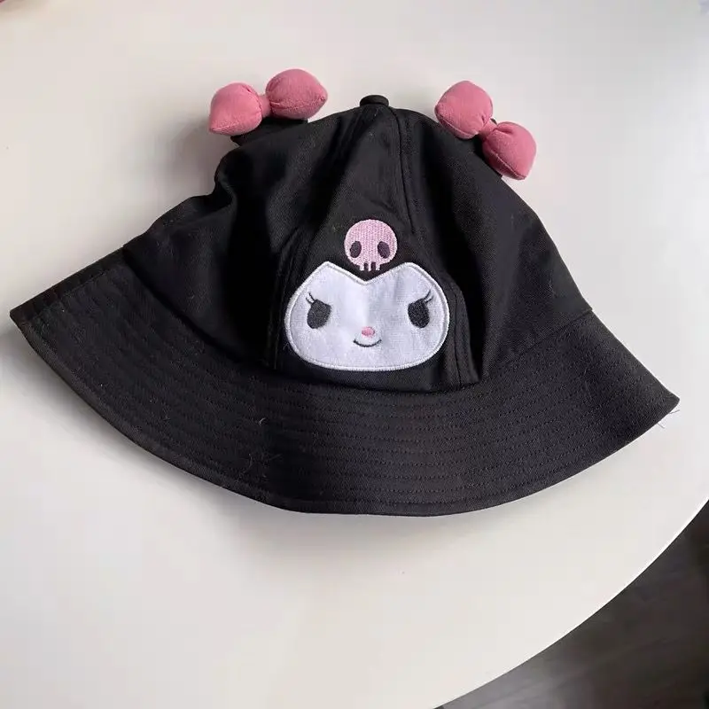 Шляпа рыбака Kuromi с маленьким дьяволом, Милая Черная мультяшная Кепка для раковины, уличная шляпа от солнца Sanrio, модная шляпа