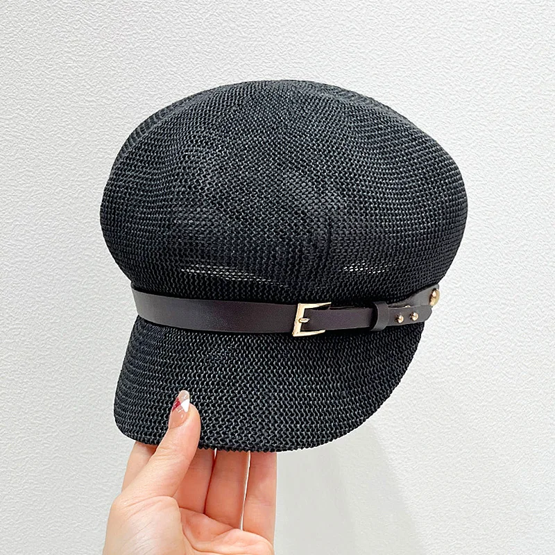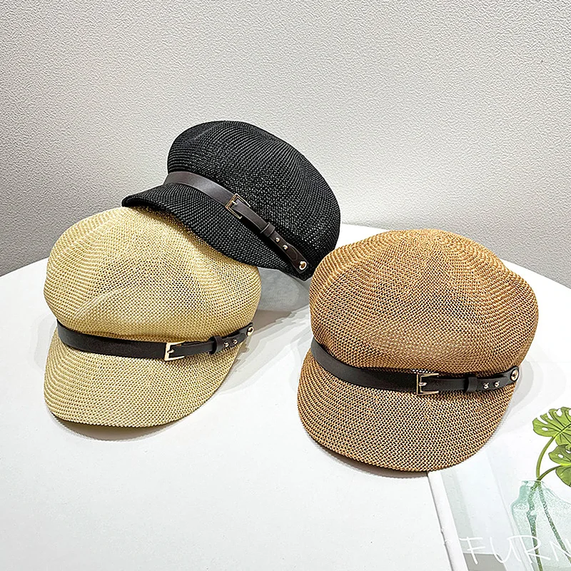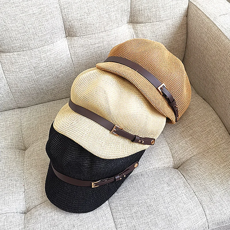 Шляпа Соломенная женская восьмиугольная, тонкая шапка газетчика художника, вязаный берет с регулируемой веревкой, воздухопроницаемая пляжная