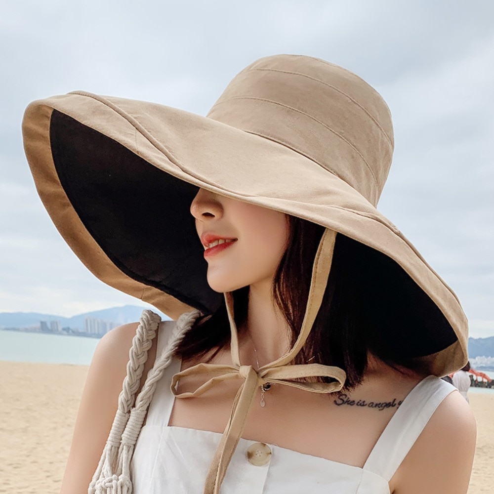 Шляпа Женская Солнцезащитная двусторонняя с широкими полями, модная шапка для отдыха на открытом воздухе, пляжа, рыбалки, с защитой от ультрафиолета, летняя
