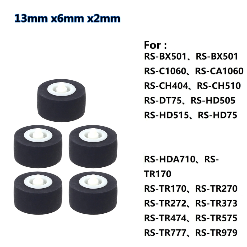 5x Черный резиновый подшипник роликовый направляющий шкив колеса зажимной ролик 13x6x2 мм для Sony RS-CH770 RS-BX501 AAX9