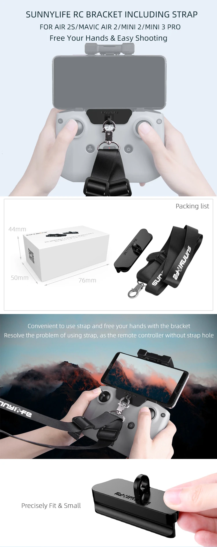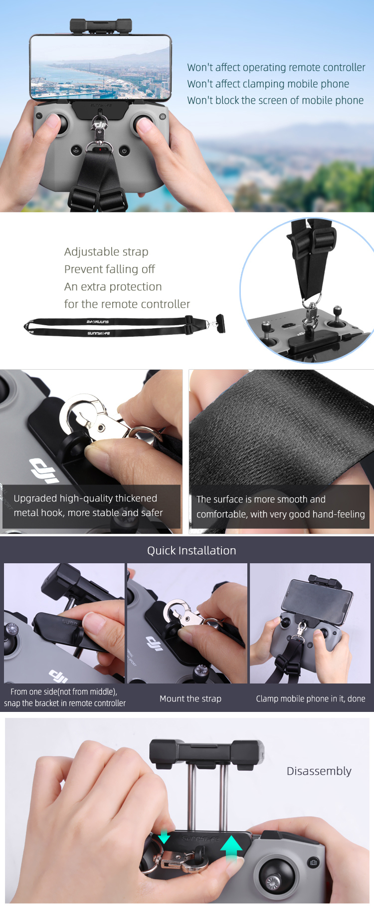 1. Легко Используйте ремешок и Освободите руки. Решить проблему, что пульт дистанционного управления Mavic Air 2 не может напрямую использовать ремешок без отверстия для шнурка.