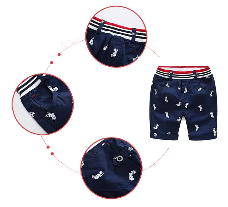 2018 Летняя Детская мода с эластичной талией мотоциклетный принт темно-синий хаки хлопок спортивные футбольные баскетбольные шорты для маленьких мальчиков