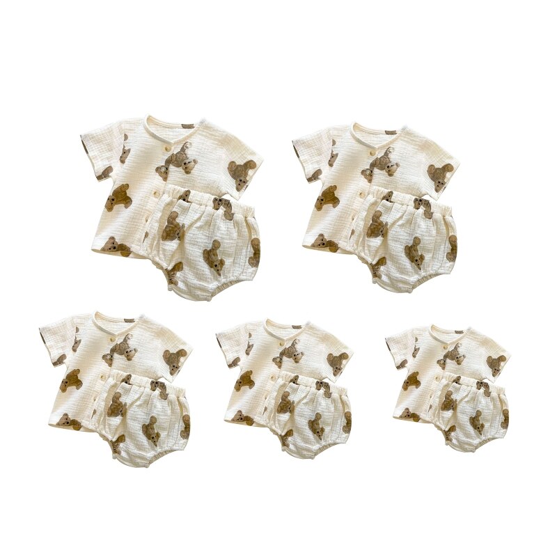 Детский наряд для лета и весны: наряд из мягкого тканевого материала, применимый для повседневного ношения летом или весной, подходит для улицы или в помещении, принты медведя позволяют вашим малышам любить костюмы и никогда не выходят из моды.