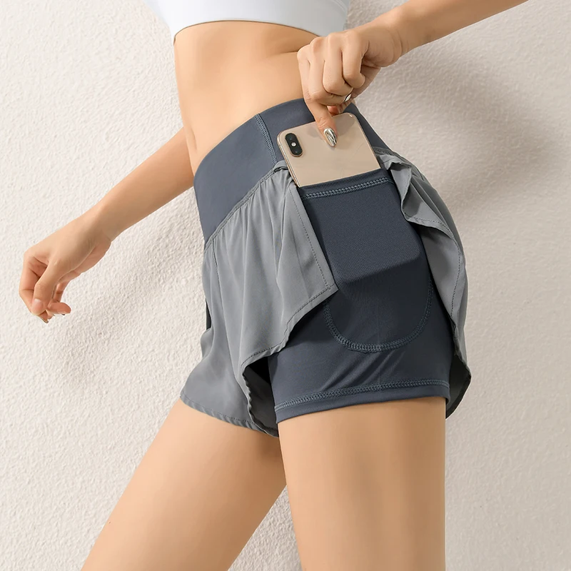 Шорты женские спортивные с высокой талией, двухслойные спортивные, с боковыми карманами, для бега и занятий спортом, лето