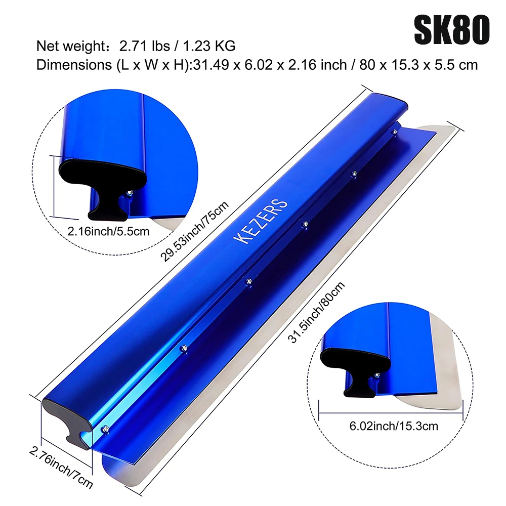 【Прочный материал】 Лезвие KEZERS для удаления гипсокартона изготовлено из авиационного алюминиевого корпуса, окрашено в синий цвет, обеспечивает высокую чувствительность и легкость при перемещении грязи.
