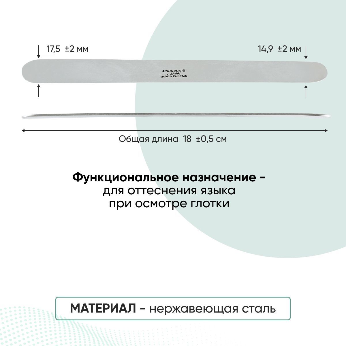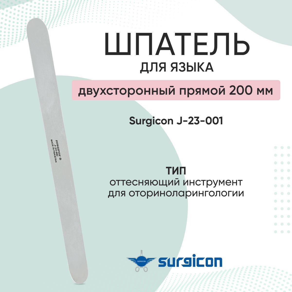 Шпатель для языка двусторонний прямой 200 мм Surgicon J-23-001