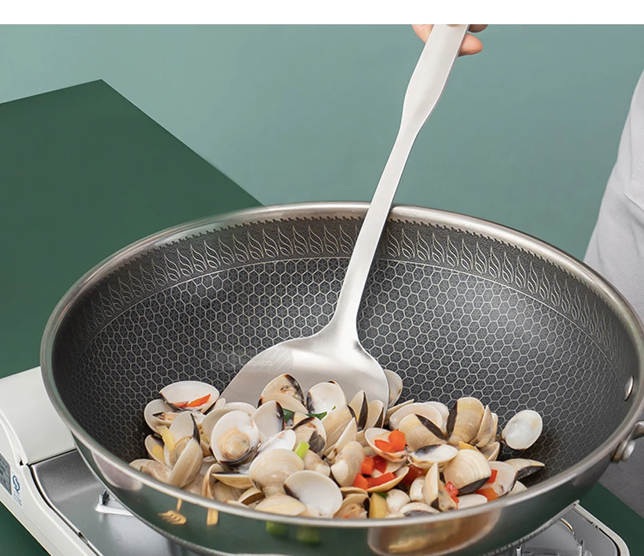 1. Высокое качество: Использование высококачественного материала из нержавеющей стали и тщательная зеркальная полировка делают эту лопатка для вока более изысканной, прочной и долговечной.