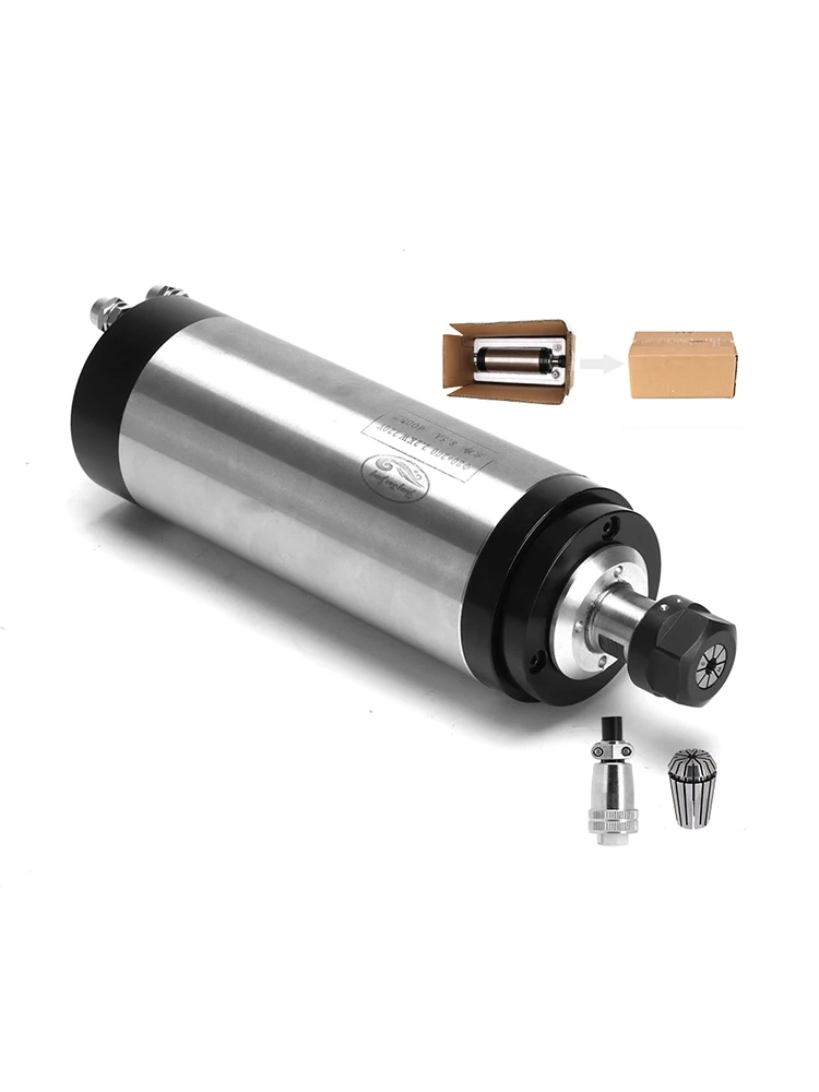 Size:65mmPower:1.5KWVoltage:220VFrequency:0-400HzSpeed:0-24000rpmWater Cooling ER11colletRunout off:less than 0.005mmGrease LubricationBearing: 4pcs bearing C7005X2 C7002X2