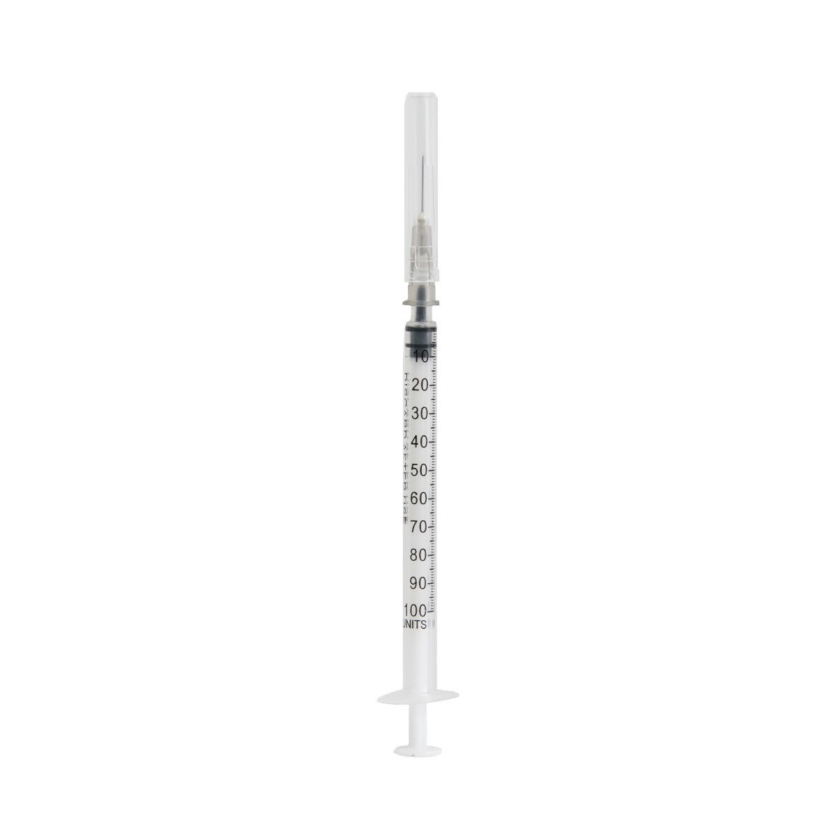 Шприц 1 мл инсулиновый U-100 комплект 100 шт 3-х компонентный, съемная игла 0,4х13(12) мм - 27Gх1/2, шприц для инъекций одноразовый стерильный 1 мл U100 упаковка 100 шт, шприц медицинский трехкомпонентный 1мл для уколов надетая игла 27G