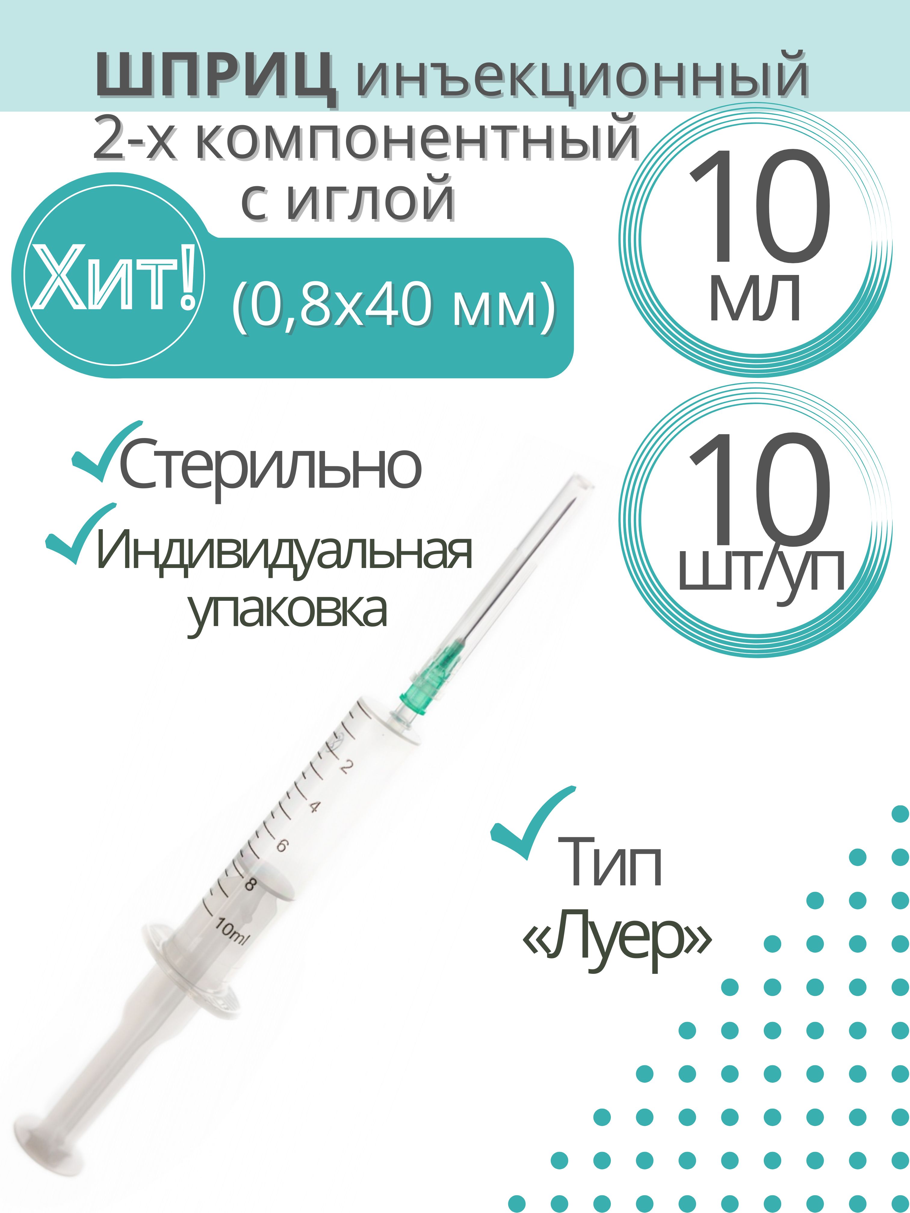 • Объем шприца: 10 мл.