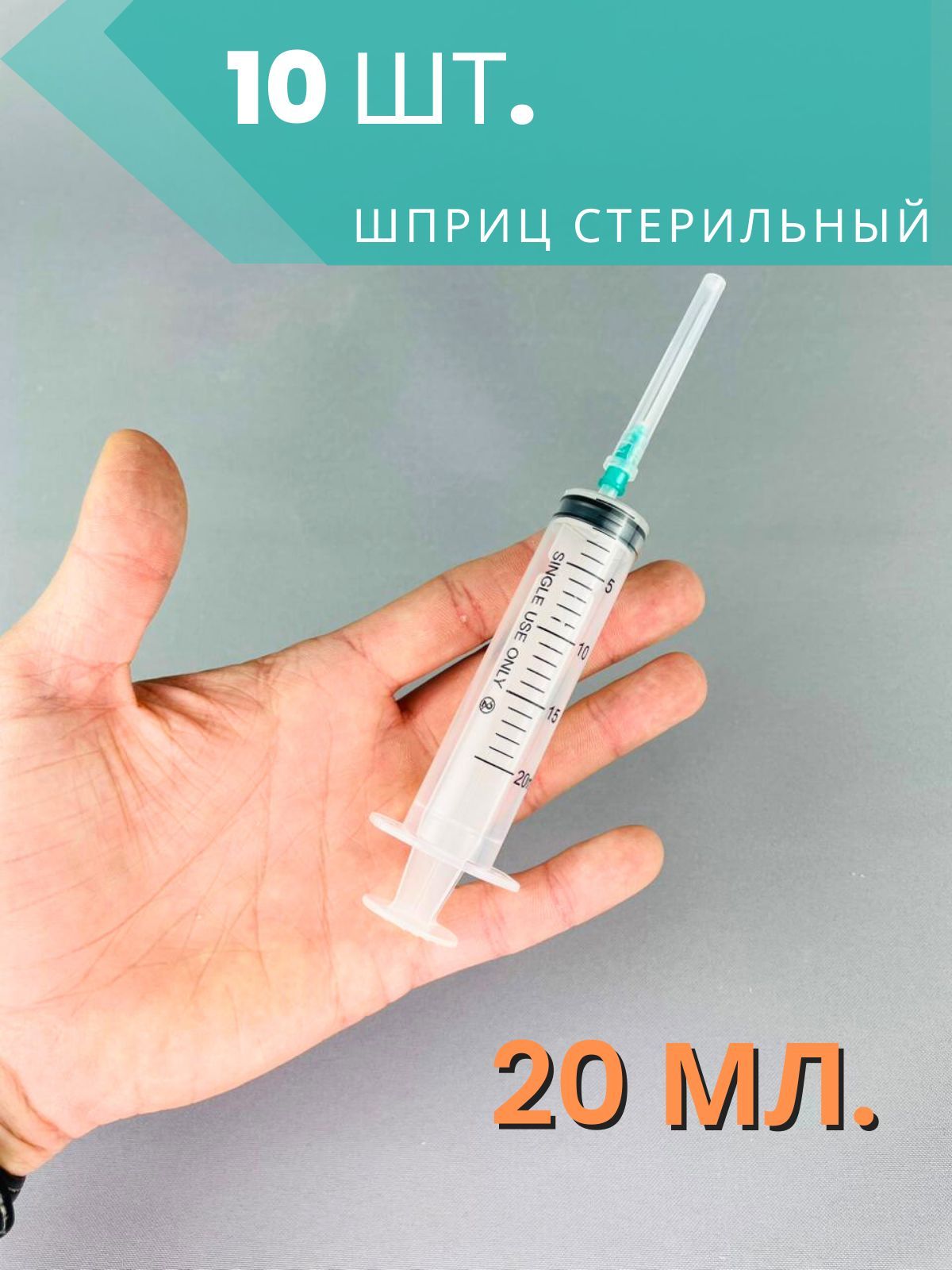 Шприц 20 мл стерильный одноразовый, 10 шт.