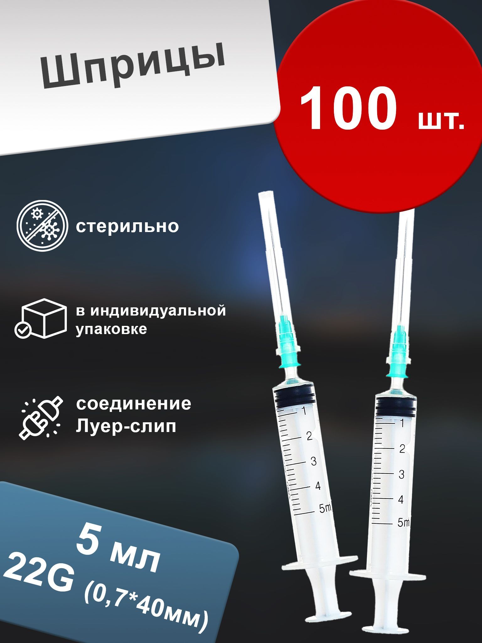 Шприц 22G 0.7*40 трёхкомпонентный100 шт.