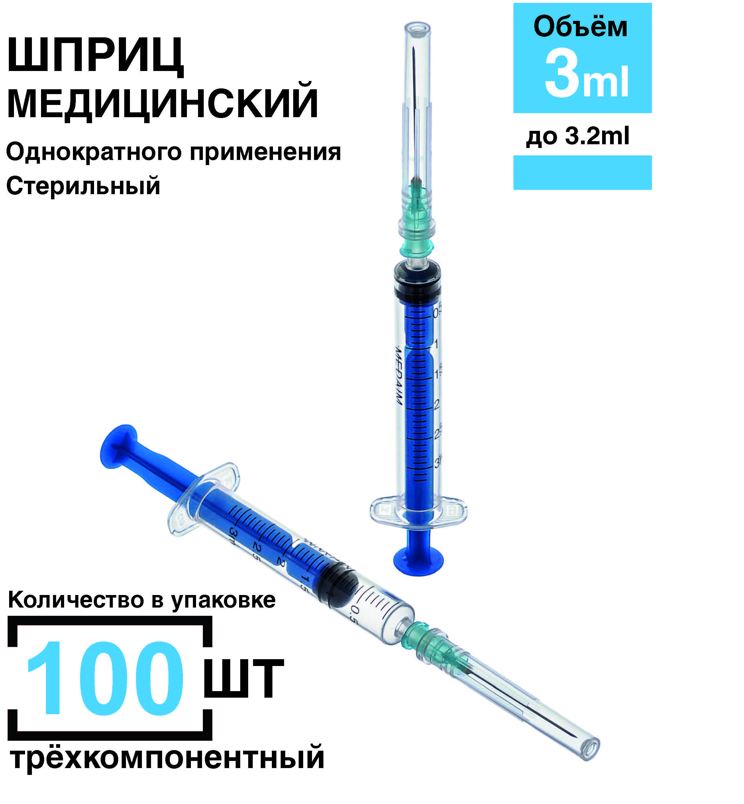 Описание: Шприц медицинский одноразовый инъекционный стерильный MedAim 3мл., с иглой 0,63*32 Шприцы поставляются напрямую от производителя, остаточный срок годности не менее 4 лет. Шприц одноразовый медицинский 3-х компонентный состоит из: прозрачного цилиндра, поршня и резиновой манжеты на поршне (3-й компонент шприца), которая обеспечивает плавность ввода лекарственных средств. Цилиндр обладает повышенной прозрачностью для обеспечения максимального контроля наличия пузырьков воздуха и дозы вводимого препарата, обработан специальным медицинским, гипоаллергенным силиконом, для обеспечения плавного хода поршня. Плавный ход поршня обеспечивает безболезненную инъекцию. Тонкостенная игла из медицинской стали марки SUS304 с исключительно гладкой поверхностью. Заточка иглы лазерная трехгранная копьевидная. Стопорное кольцо исключает риск случайного извлечения поршня из цилиндра. Крепление иглы по типу Луер (luer), производитель MedAim (США)