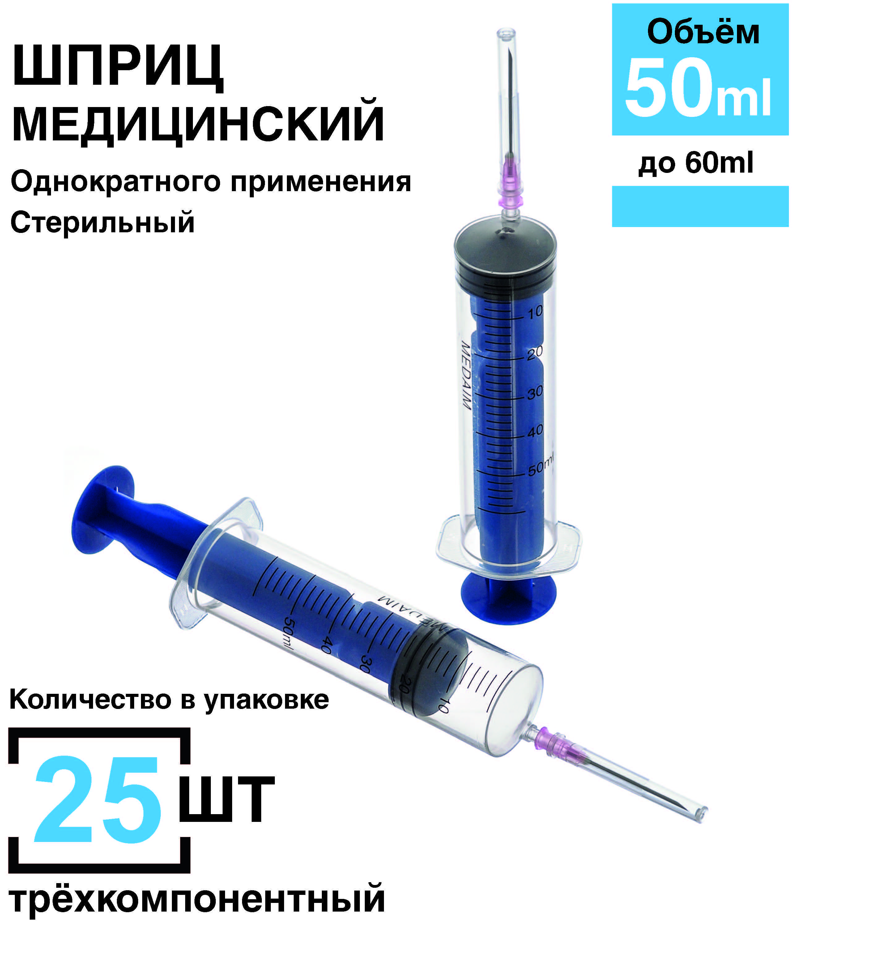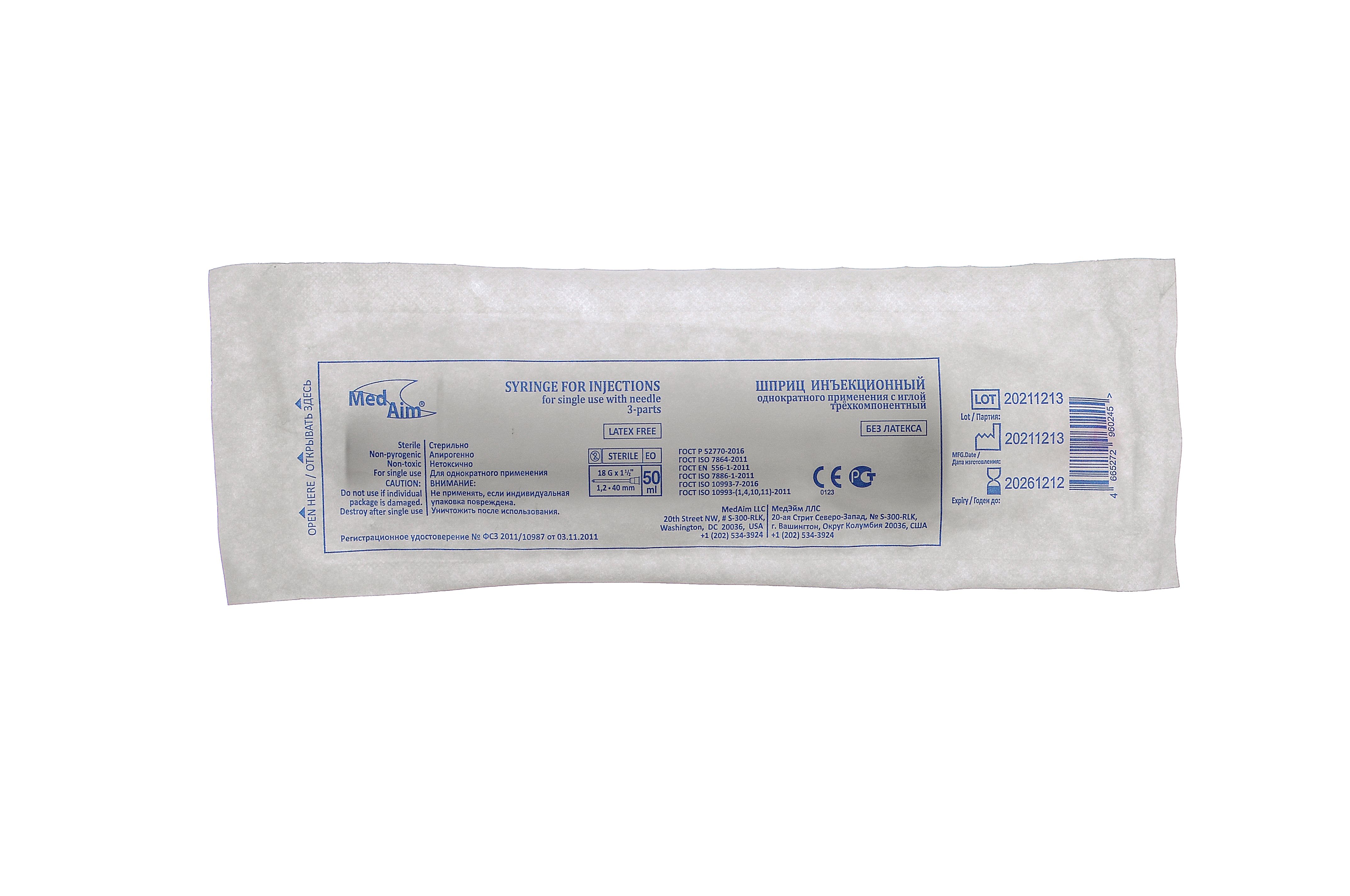 Описание: *Шприц медицинский одноразовый инъекционный стерильный MedAim 50мл., с иглой 1,2*40