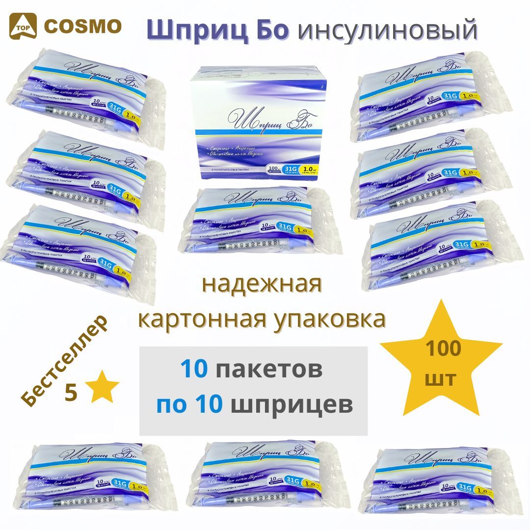 Шприц БО 1мл 31G 8mm,U100,100шт-инсулиновый, для ботулинотерапии100 шт.