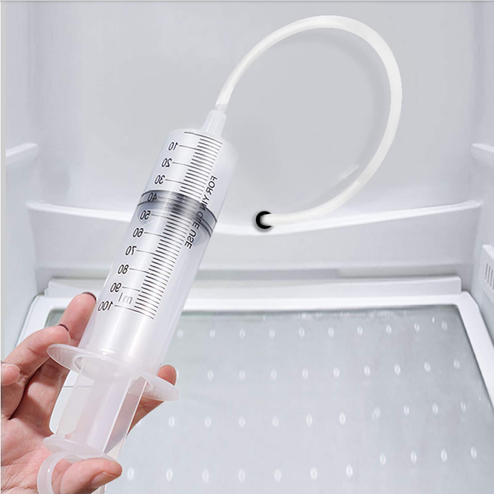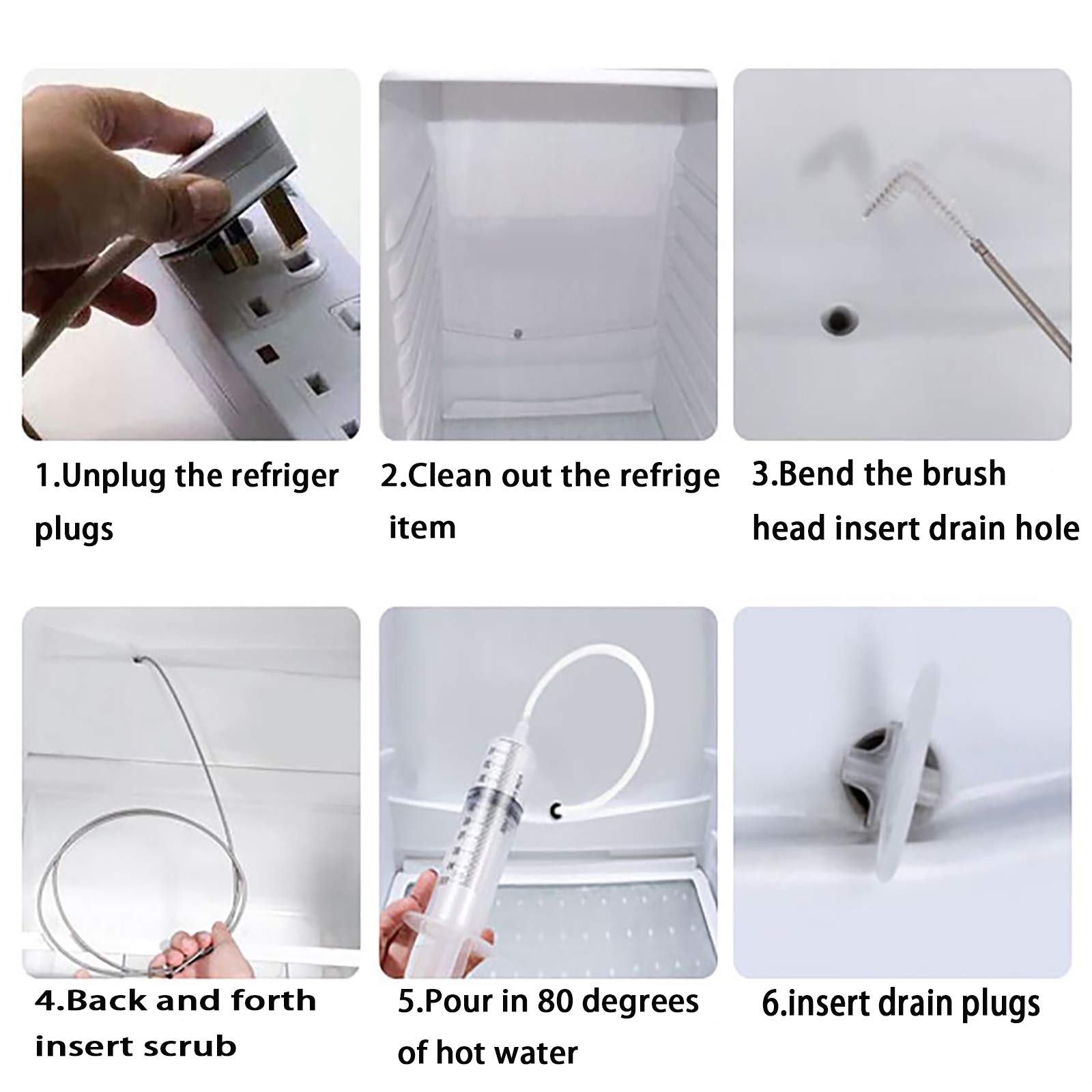 • ♥【Практическое design】 59-дюймовый шланг с 1,5 того, что наши производственные мощности включают в гибкий холодильник кисти является достаточно долго углубляться в стока и удалить любые засорения и мусора, И поставляется с шприцом для подключения шланга, чтобы было легче вводить горячую воду. Шпатель для отледенения может быть использован для удаления избыточного льда, и он поставляется с сливной вилкой, чтобы не допустить падения вещей и засорения стоков, держит холодильник чистым.
