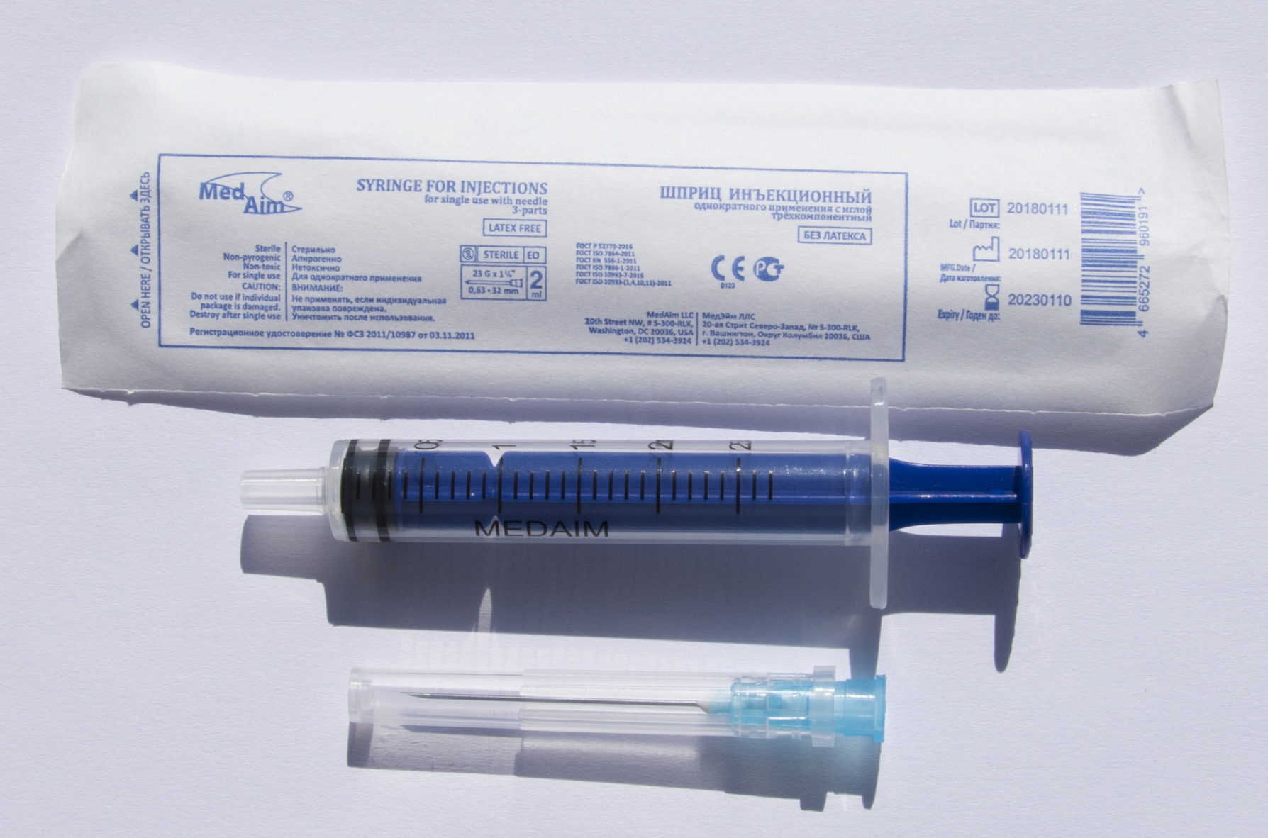 Объем шприца, мл 2