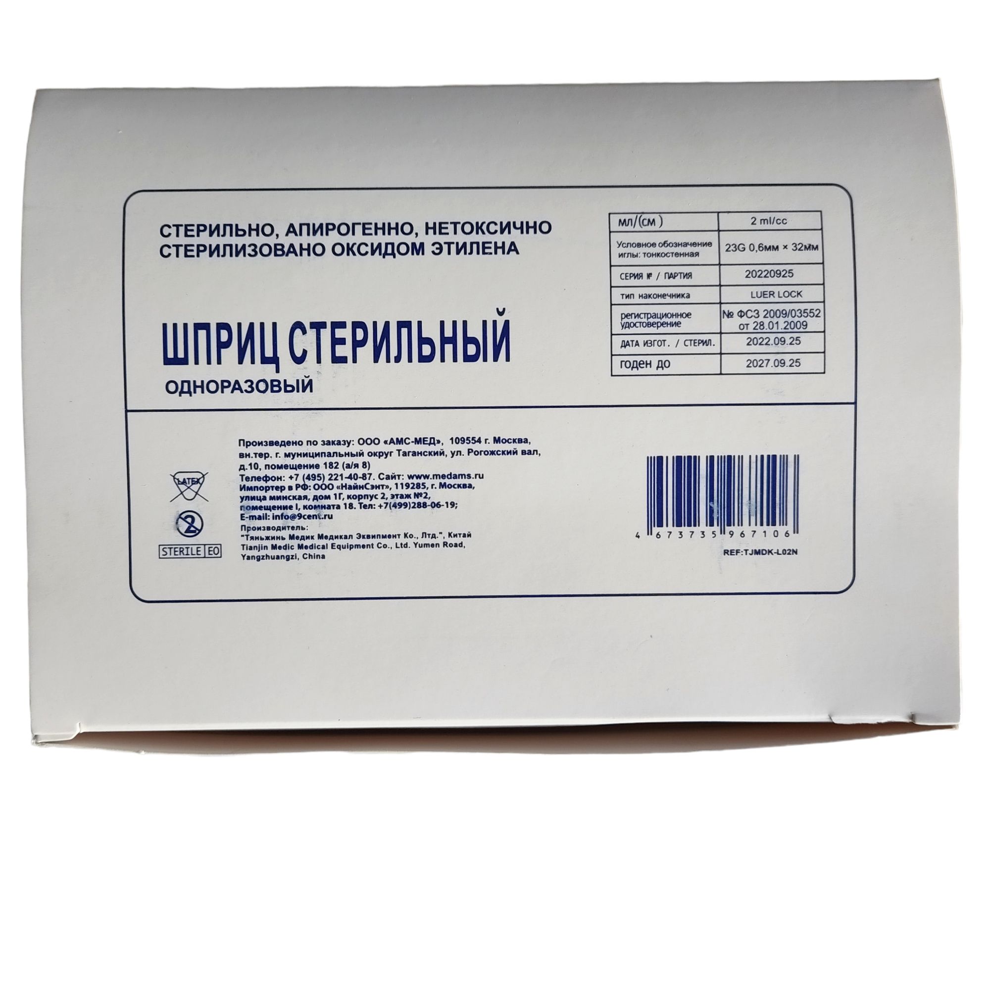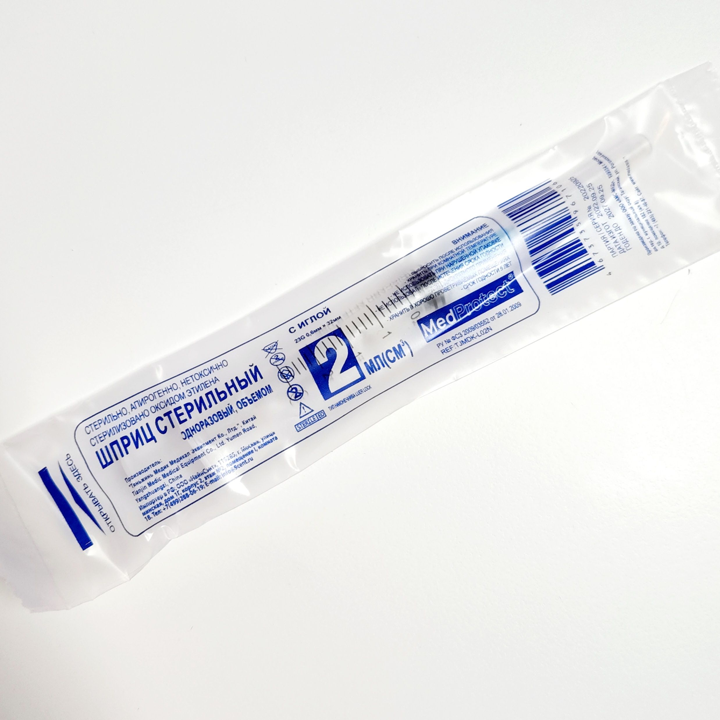 Объем шприца, мл 2