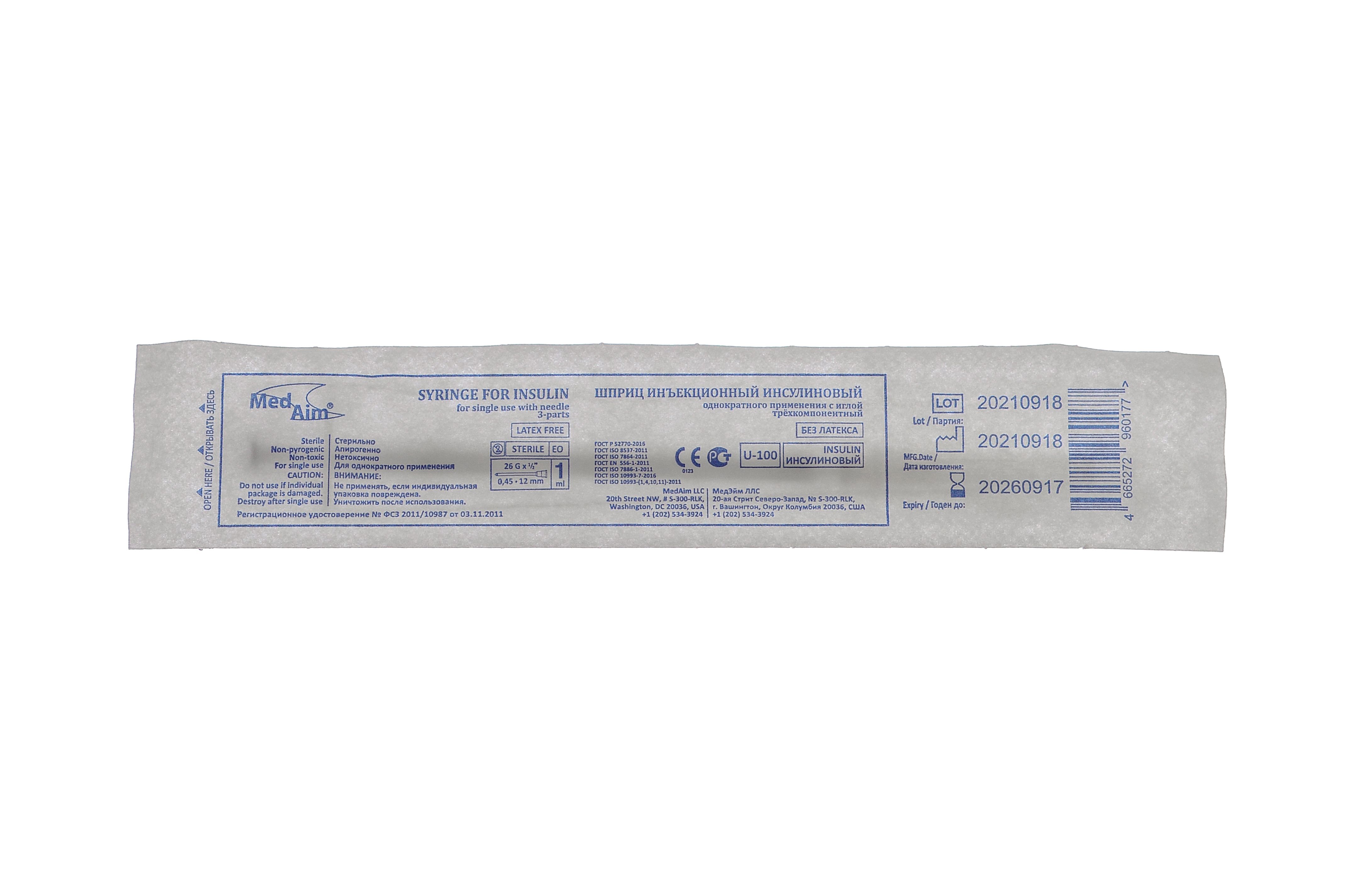 Описание: Шприц медицинский одноразовый инъекционный стерильный MedAim объемом 1 мл, трехдетальный, иглой 0,45х12 (26G). Игла надета, съемная. Двойная шкала позволяет использовать шприц, как для введения инсулина, так и туберкулина. Шкалы: - инсулиновая – 100 единиц (соответствует 1 мл), цена деления 1 единица - туберкулиновая – 1 мл, цена деления 0,01 мл. Игла надета на шприц. Детали шприца изготовлены из полиэтилена и полипропилена медицинского назначения; манжета изготавливается из нетоксичного резинового компаунда, не содержащего латекс, что позволяет исключить проявление часто встречающейся латексной аллергии. Индивидуальная упаковка позволяет идентифицировать шприц без вскрытия упаковки. Бесцветный прозрачный цилиндр и белый (допускается РАЗНОЦВЕТНЫЙ) контрастный шток-поршень для лучшего визуального контроля лекарства при проведении процедуры. Внутренняя поверхность цилиндра обработана специальным составом, что обеспечивает плавный и мягкий ход поршня. Стопорные кольца внутри цилиндра предотвращают выдергивание поршня даже при значительном усилии. Инъекционная игла 0,45х12 (26G) является тонкостенной, а, следовательно, менее травматичной; заточка иглы под наиболее оптимальными углами делает колющую часть иглы наиболее острой; специальное покрытие позволяет значительно снизить сопротивление при вхождении иглы в ткань. Индивидуальная потребительская упаковка – полибэг обеспечивает сохранность стерильности и легкость вскрытия без образования "бахромы", отражает полную информацию о продукте: № партии, дату окончания срока годности, данные о производителе. Стерилизация газовая – оксидом этилена. Срок годности не менее 4 лет. Игла с трехгранной заточкой. Конический поршень для введения точной дозы препарата. Несмываемая двойная шкала 1 мл/100 ед. Стерильный Одноразовый Инсулиновая шкала 100 ед., цена деления 1 ед. Туберкулиновая шкала 1 мл, цена деления 0.01 мл. Игла G26 (0.45х12 мм)