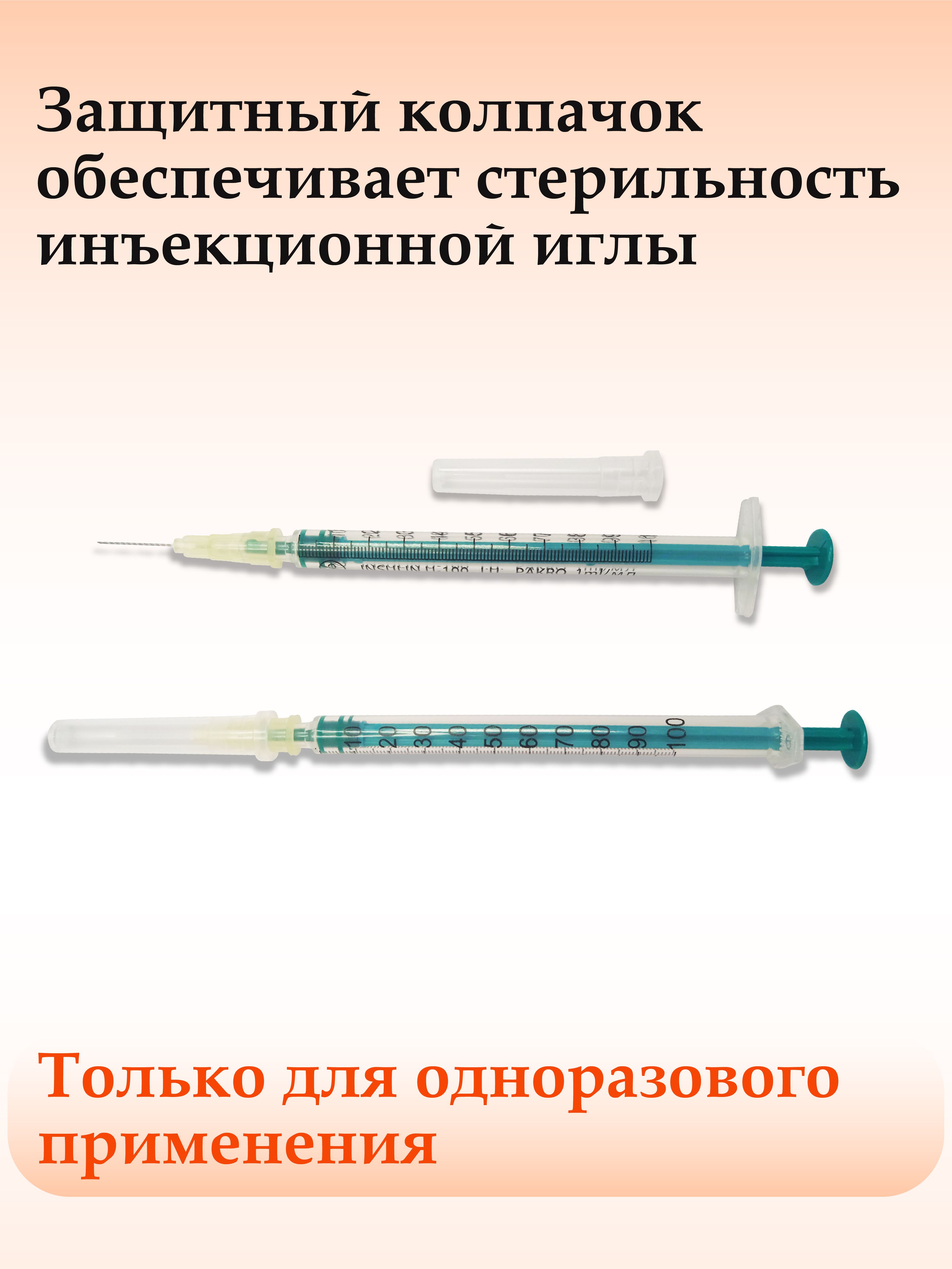 Описание: Шприц инсулиновый U-100 со съёмной иглой применяют для инъекций инсулина.