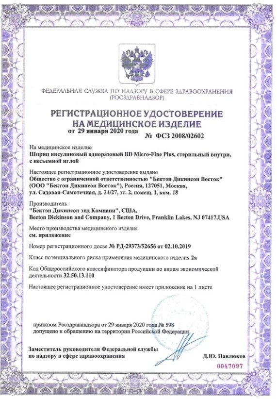 Шприц инсулиновый Micro-fine plus 1 мл U-100 30G, 0.3x8 мм, 10 штук в упаковке