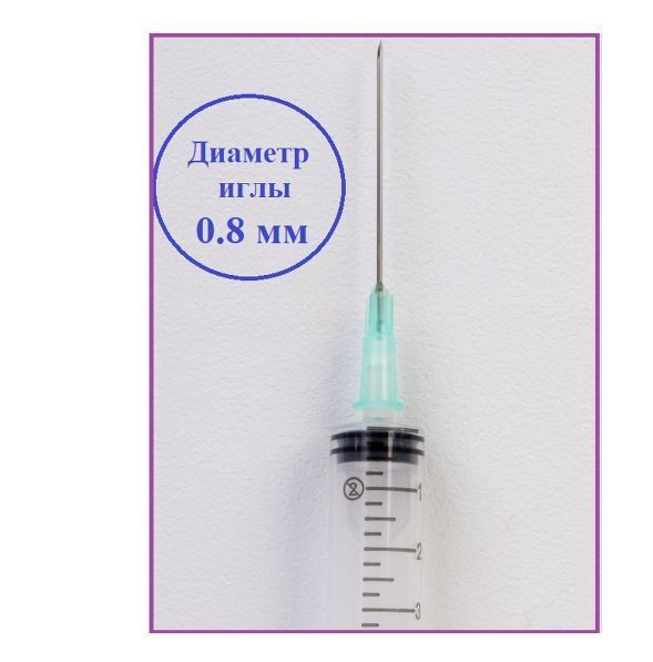 Описание: Шприцы медицинские 20 мл одноразовые стерильные применяют для выполнения подкожных, внутримышечных инъекций и других лечебно-диагностических мероприятий, после использования утилизировать. Шприц трехкомпонентный - трехдетальный инъекционный медицинский расходный материал однократного применения для ручного использования. Стерильное, апирогенное, нетоксичное изделие типа Луер имеет концентрическое расположение наконечника, укомплектовано иглой. Шприц комплектуется одной надетой на шприц иглой инъекционной со стандартным срезом, с трехгранной заточкой и силиконовым покрытием для атравматического введения и снижения болезненности при проникновении в ткани. Размеры иглы 21G х 1 1/2' (0,8х40 мм). Цветовая кодировка иглы соответствует требованиям международного стандарта ISO 6009. Материал канюли иглы – нержавеющая сталь (AISI 304). Предохранительный колпачок иглы имеет пять ребер жесткости, обеспечивающие удобство снятия, и, соответственно, дополнительную безопасность медицинского персонала при снятии колпачка с иглы и уменьшает риск контаминации иглы при снятии колпачка, а также обеспечивает экономию времени для выполнения простой медицинской манипуляции «инъекция».Индивидуальная стерильная блистерная упаковка с отгнутым краем – плотная медицинская бумага и прозрачная пленка (состав пленки - полиэтилен / полиамид). Упаковка вскрывается с небольшим усилием, что предотвращает самопроизвольное вскрытие, без образования бумажной бахромы. Нетоксично, апирогенно. Метод стерилизации - этиленоксид. Срок стерилизации - 5 лет.