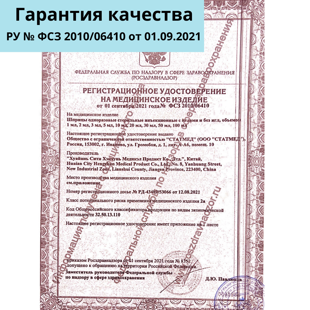 Cоединение по типу Luer-Lock, наличие уплотнительной манжеты на поршне.