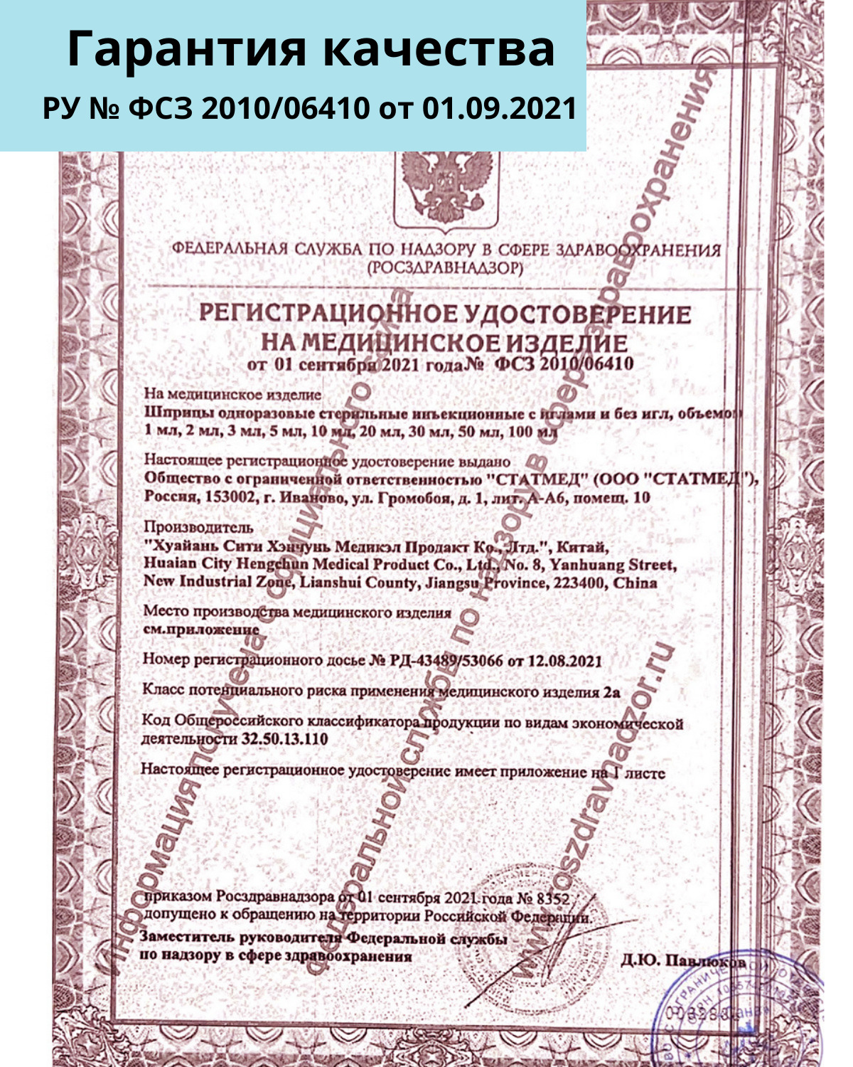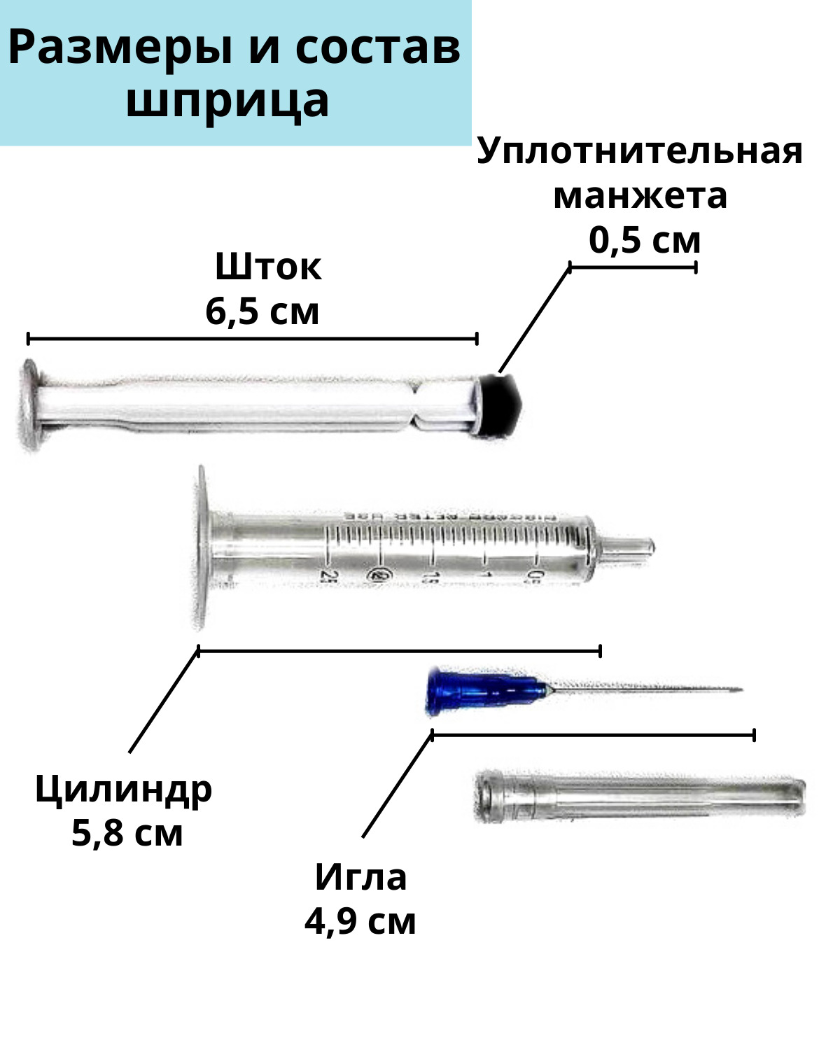 Шприц состоит из трех частей: цилиндр, поршень, манжета на поршне. Изготовлен из специального полипропилена.