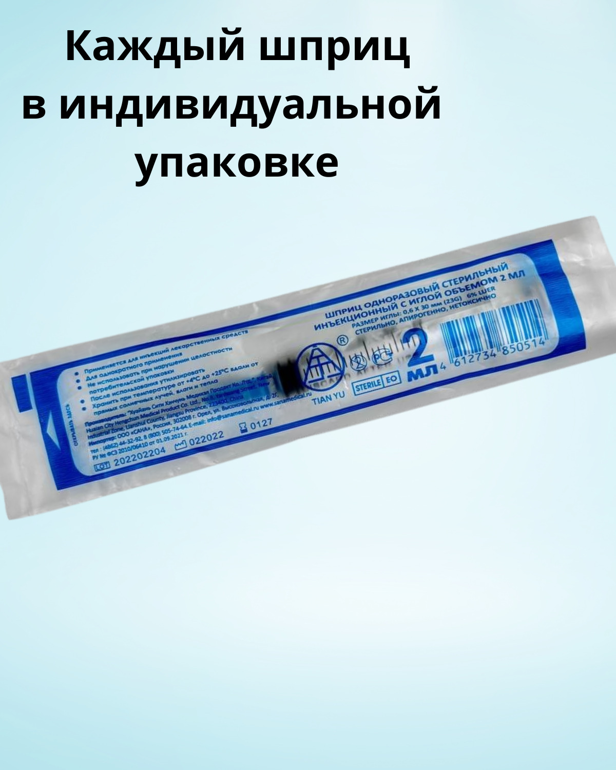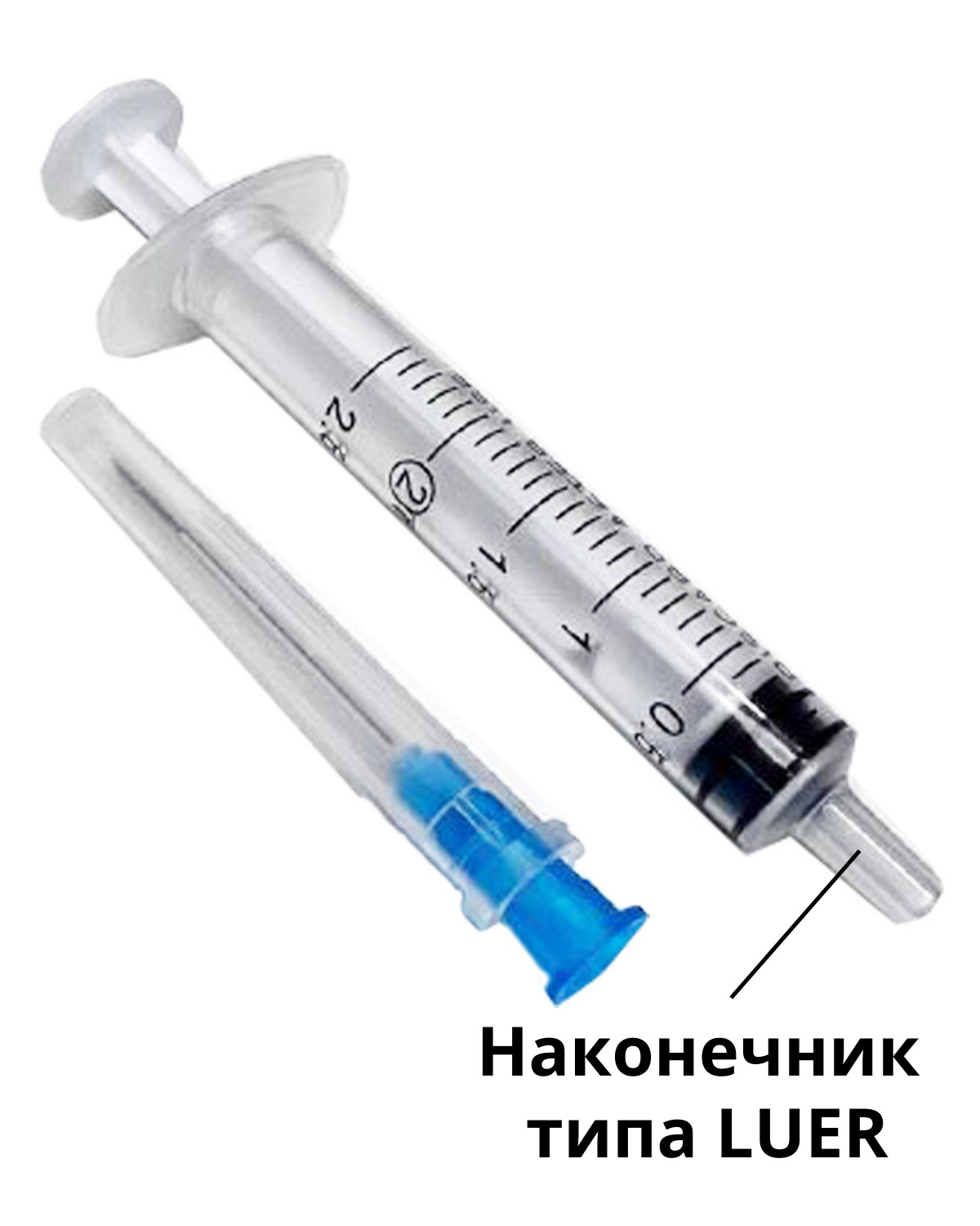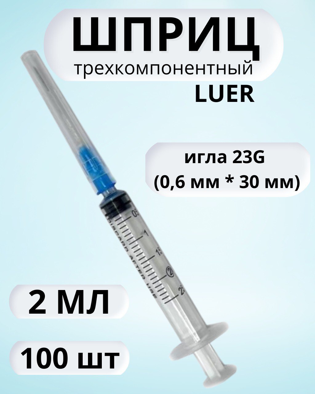 ШПРИЦ МЕДИЦИНСКИЙ LUER (Луер) 2 мл 100 штук с иглой 23G (0,6 мм * 30 мм) / одноразовый трехкомпонентный для внутривенных и внутримышечных инъекций и уколов