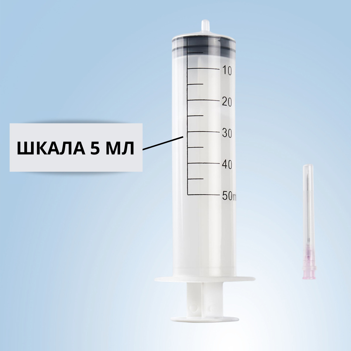 ШПРИЦ МЕДИЦИНСКИЙ LUER (Луер) 50 мл 2 штуки с иглой 18G (1,2 мм * 40 мм) / одноразовый трехкомпонентный для внутривенных и внутримышечных инъекций и уколов