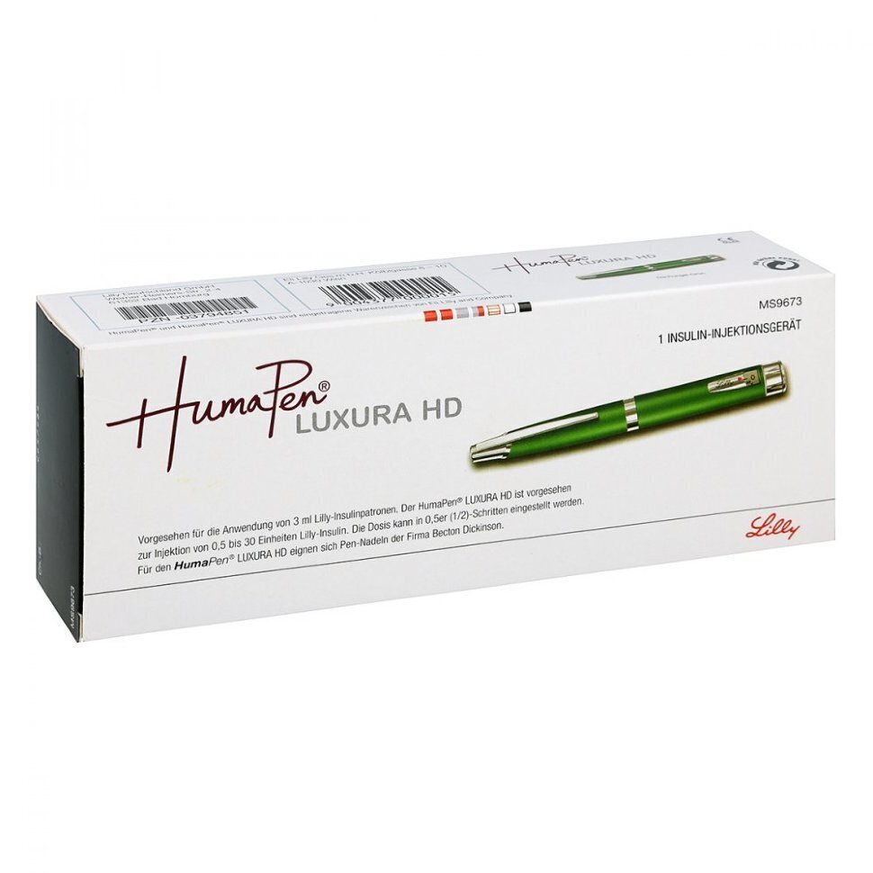 Концентрация инсулинов в картриджах U100.Шприц-ручка ХумаПен Люксура ДТ имеет минимальный шаг набора дозы инсулина 0,5 ед, поэтому идеально подходит для детей и взрослых с потребностью в малых дозах инсулина.
