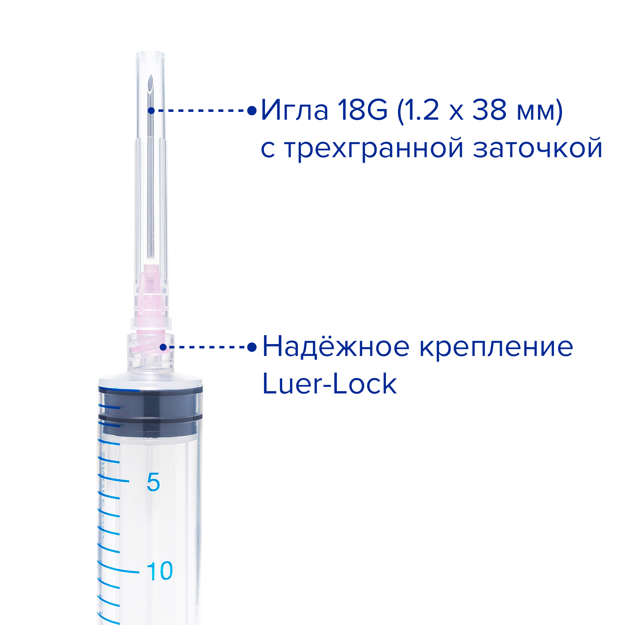 — Игла G18 с трехгранной заточкой и цветовой кодировкой канюли;