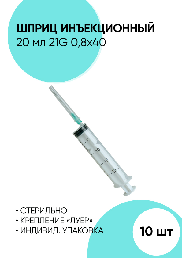 Описание: Шприц медицинский инъекционный одноразовый стерильный с иглой. Шприц состоит из прозрачного цилиндра и поршня, а также резиновой манжеты на поршне (3-й компонент шприца), которая обеспечивает плавность ввода лекарственных средств без рывков.Резиновый уплотнитель из синтетического каучука не содержит латекса, что полностью устраняет риск аллергических реакций. Специальная силиконовая смазка обеспечивает более плавное и равномерное движение поршня. Эти качества имеют особенно большое значение при необходимости медленных струйных вливаний, точного дозирования препаратов в анестезиологии, интенсивной терапии.Цилиндр шприца абсолютно прозрачен, для того чтобы при введении лекарства можно было проконтролировать отсутствие воздушных пузырьков (исключается эмболия мелких сосудов) и оценить надлежащий вид лекарственного средства.Шрицы поставляются в индивидуальной упаковке, так же упакованы в пакет и картонною коробку, чтобы товар не был испорчен. В картинке товара указаны размеры и цвет.