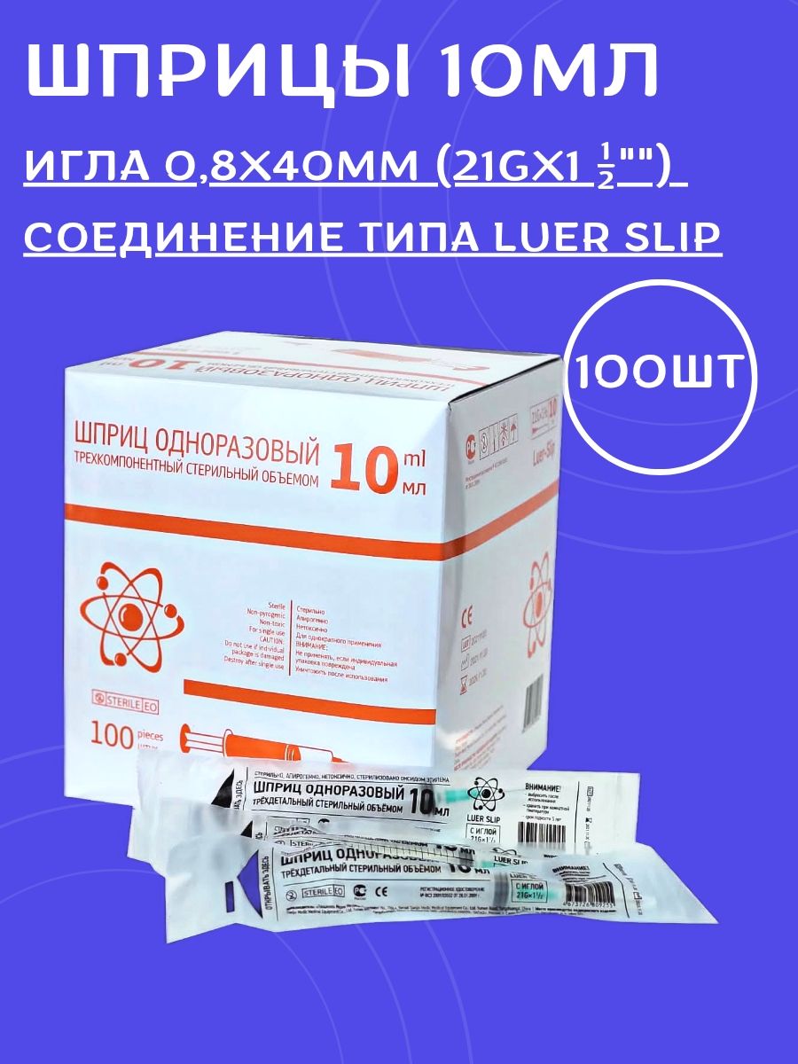 Описание: Шприц одноразовый медицинский 3-х составной состоит из: прозрачного цилиндра и поршня, а также резиновой манжеты на поршне (3-й компонент шприца), которая обеспечивает плавность ввода лекарственных средств без рывков. Цилиндр шприца абсолютно прозрачен, для того чтобы при введении лекарства можно было проконтролировать отсутствие воздушных пузырьков. Иглы производятся из стали высочайшего качества и имеют тройную заточку острия. Номинальная вместимость -10 мл, Деление шкалы 1 мл. Стерильно, нетоксично, апирогенно. Стерильно до вскрытия, перед использованием проверить целостность потребительской упаковки ( не применять в случае нарушения целостности упаковки) Использовать сразу после наполнения. Упаковано в картонную коробку в количестве 100шт