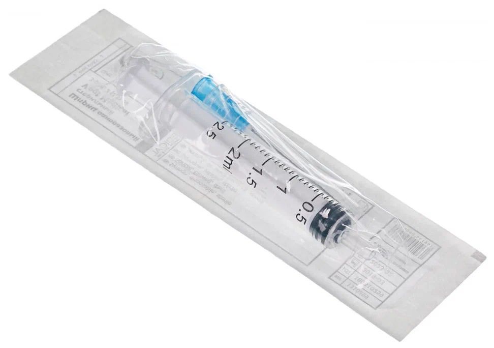 Описание: Шприц трехкомпонентный Vogt Medical 2 мл 22G (0.6×30 мм, 100 штук в упаковке). Предназначен для лекарственных инъекций. Применяется в отраслях медицины, где необходимо медленное внутривенное введение препаратов (анестезиология, интенсивная терапия, служба скорой и неотложной медицинской помощи, медицина катастроф). Стерильные, одноразового применения. Абсолютно прозрачный корпус помогает контролировать введение медикаментов, превосходная визуализация содержимого. Наличие стопорного кольца снижает риск случайной утечки медицинского препарата. Специальная силиконовая смазка обеспечивает более плавное и равномерное движение поршня. Эргономичная упаковка содержит одноразовый стерильный шприц, укомплектованный иглой (приложенной), что позволяет сократить количество подготовительных к манипуляции этапов. Компоненты шприца не содержат естественного латекса. Материал изготовления: корпус, поршень: полипропилен, уплотнитель: медицинская резина, смазка: силиконовое масло. Качество: CE. Упаковка: отдельная блистерная. Стерилизация — этиленоксид. На корпусе шприца несмываемая шкала с ценой деления 1 мл. Тип наконечника: Luer Slip. Срок годности: 5 лет