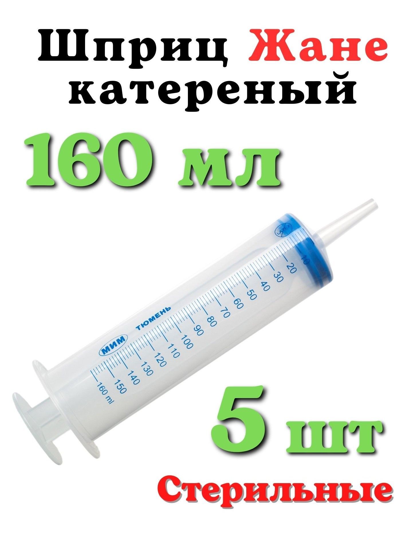 Описание: Трехкомпонентный шприц Жане 160 мл МИМ (Тюмень) c конусообразным наконечником под катетер - 5 шт.