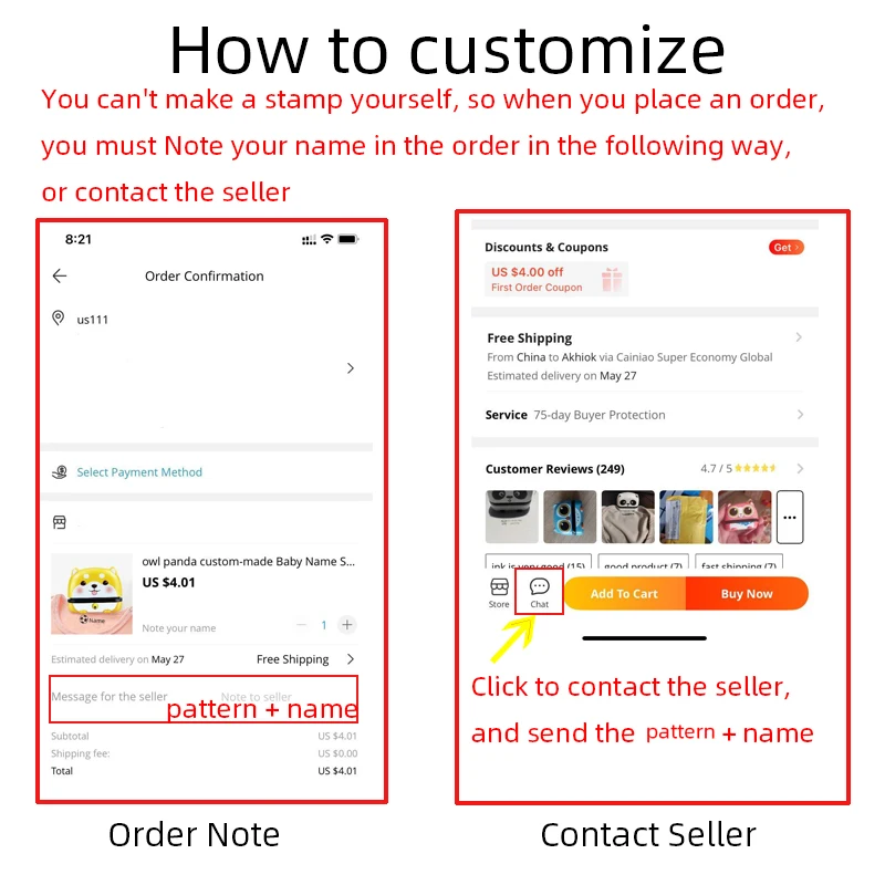 1. Вы должны указать номер шаблона + имя в заказе или связаться с продавцом и сообщить продавцу правильный номер шаблона + имя. (Правильное ПРИМЕЧАНИЕ номер шаблона + имя, вы получите право на приоритетную доставку, мы отдадим приоритет оформлению вашего заказа и отдадим приоритет доставке для вас)