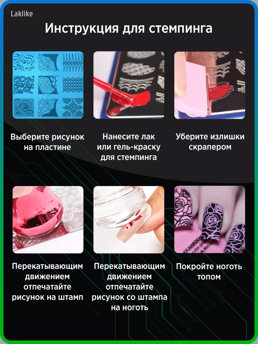 Комплектация скребок-скрапер 2 шт; Штамп для стемпинга - 1 шт; декор для ногтей, набор для стемпинга; Штамп для стемпинга силиконовый; штамп для френча