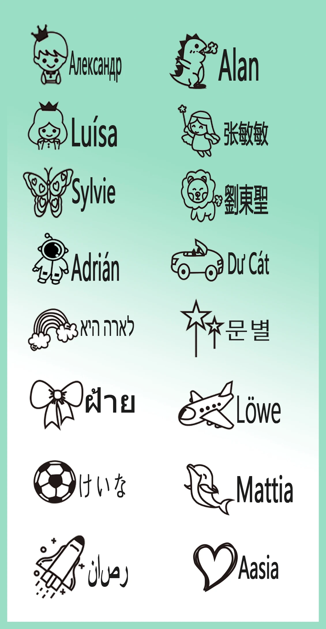 • Сделай Сам детская игрушка название штамп: это своего рода постоянный заказной водонепроницаемый милый мультфильм Печать Имя Марка, марка для детской одежды этикетки, Название школьной формы, и персонализированные этикетки. Вы можете заказать любое имя, которое вы хотите, что вы получите от покупки