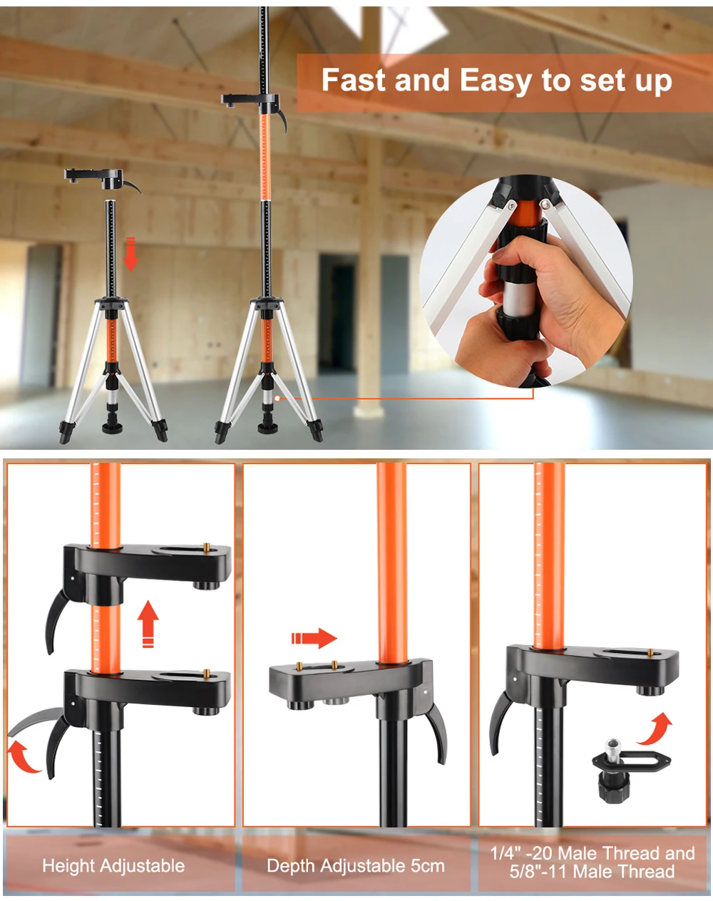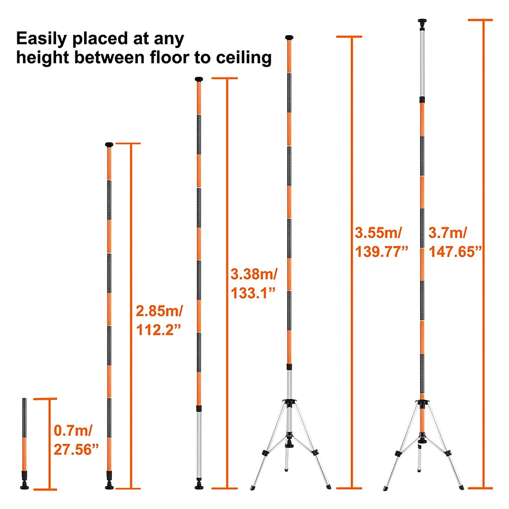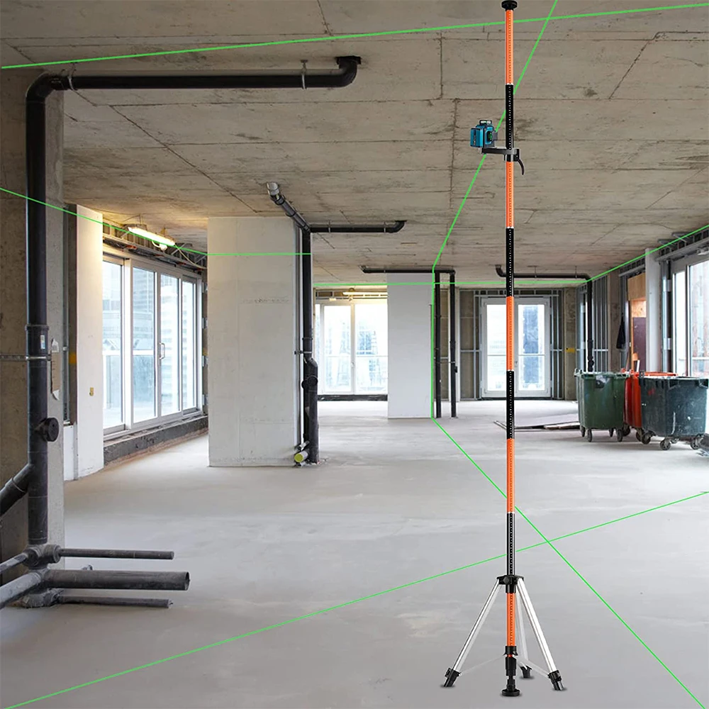 Штатив для лазерного уровня KEZERS, телескопический кронштейн 3,7 м с интерфейсом 1/4 и 5/8 дюйма для самовыравнивающегося лазера 3D 360