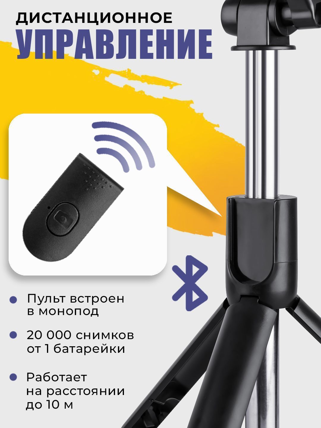 Монопод - трипод; Buetooth - пульт;
