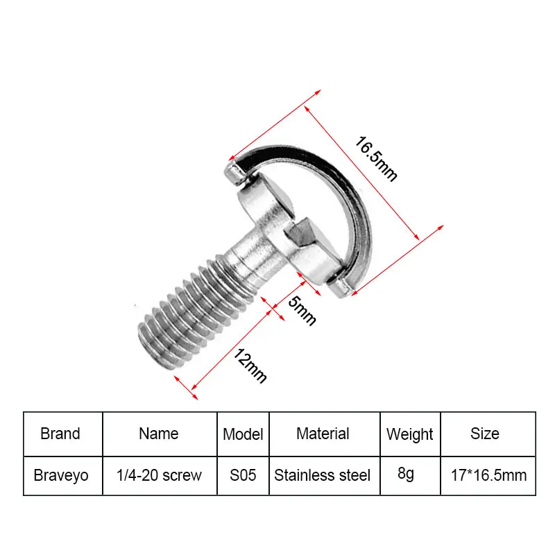 Camera 1/4-20 Inch Screw Tripod Monopod Quick Release Mount Screw D-ring Long Thread For Dslr Ballhead Mobile Phone Holder