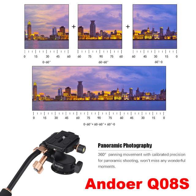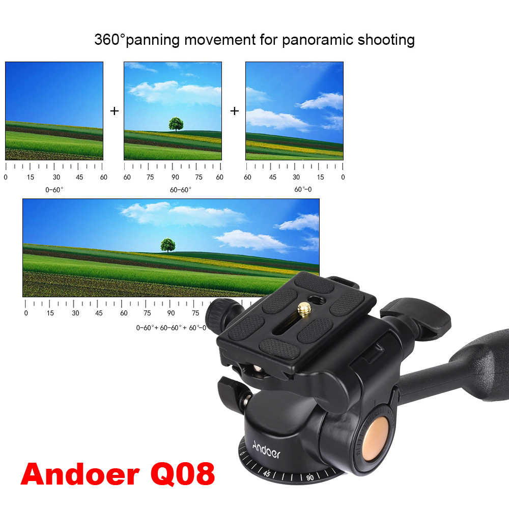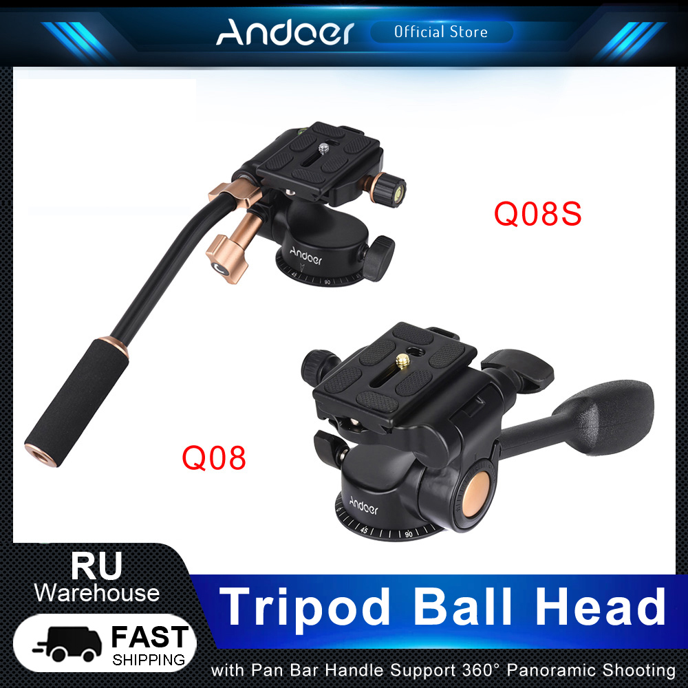 штативная головка Головка штатива Andoer Q08S/Q08, 3-ходовая амортизирующая головка из алюминиевого сплава, с быстроразъемной пластиной для DSLR-камер