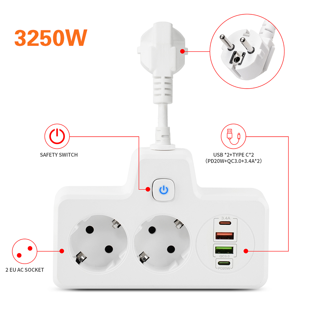 Штепсельная Вилка европейского стандарта, штепсельная розетка, Расширительная вилка PD QC3.0, быстрая зарядка, многофункциональная USB зарядка для мобильного iPad с переключателями