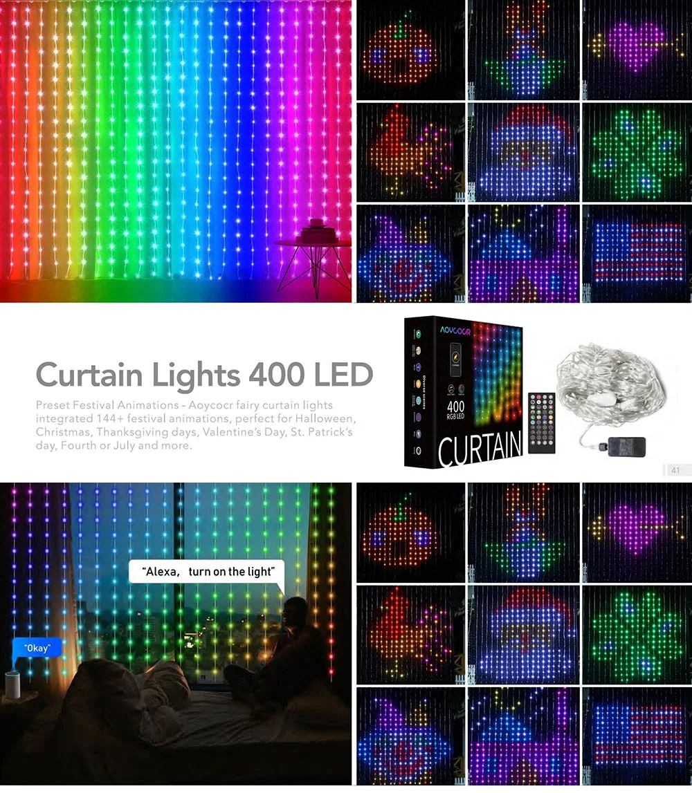 【 100 + сценического освещения】 Вы можете найти уникальные огни на уличных занавесках на каждом фестивале, подходящие для магазинов, супермаркетов, ночных клубов и баров, чтобы привлечь внимание клиентов во время летнего Хэллоуина, Снова в школу, День труда, День благодарения, Черная Пятница, Киберпонедельник, Продажи в конце года, Рождество, Ханука, День подарков, Новый год и День независимости